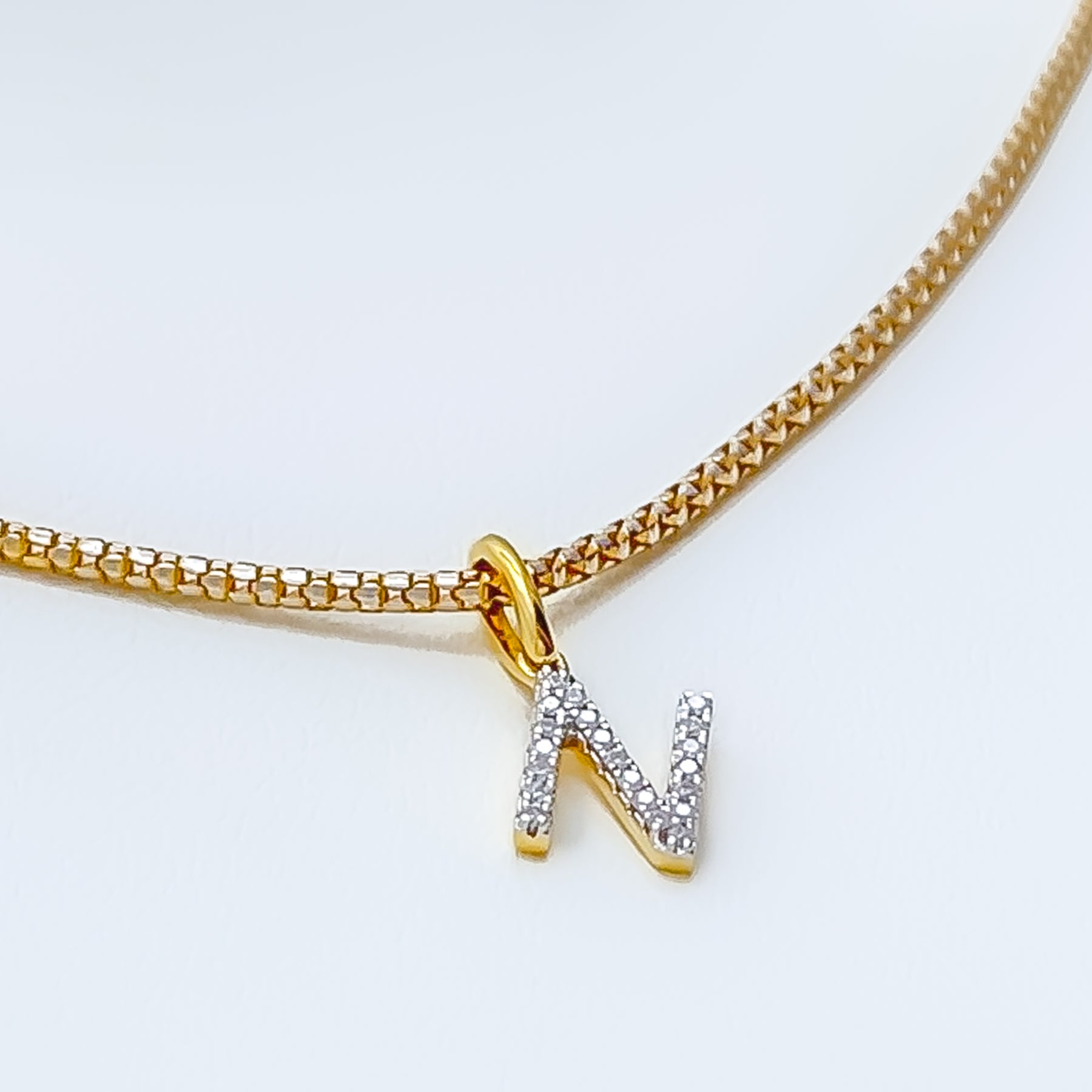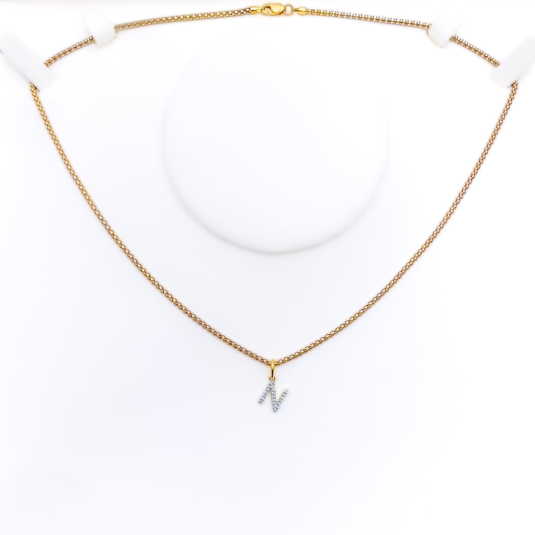 Stylish and refined, this 18k yellow gold pendant features the letter N highlighted with 0.07ct of sparkling VS-quality diamonds. Weighing 0.72 grams and measuring 0.6 inches in length, it delivers a graceful balance of shine and personalization. The warm gold finish adds a timeless elegance to its sleek form. Chain not included, and it is GGL certified for guaranteed authenticity and quality.