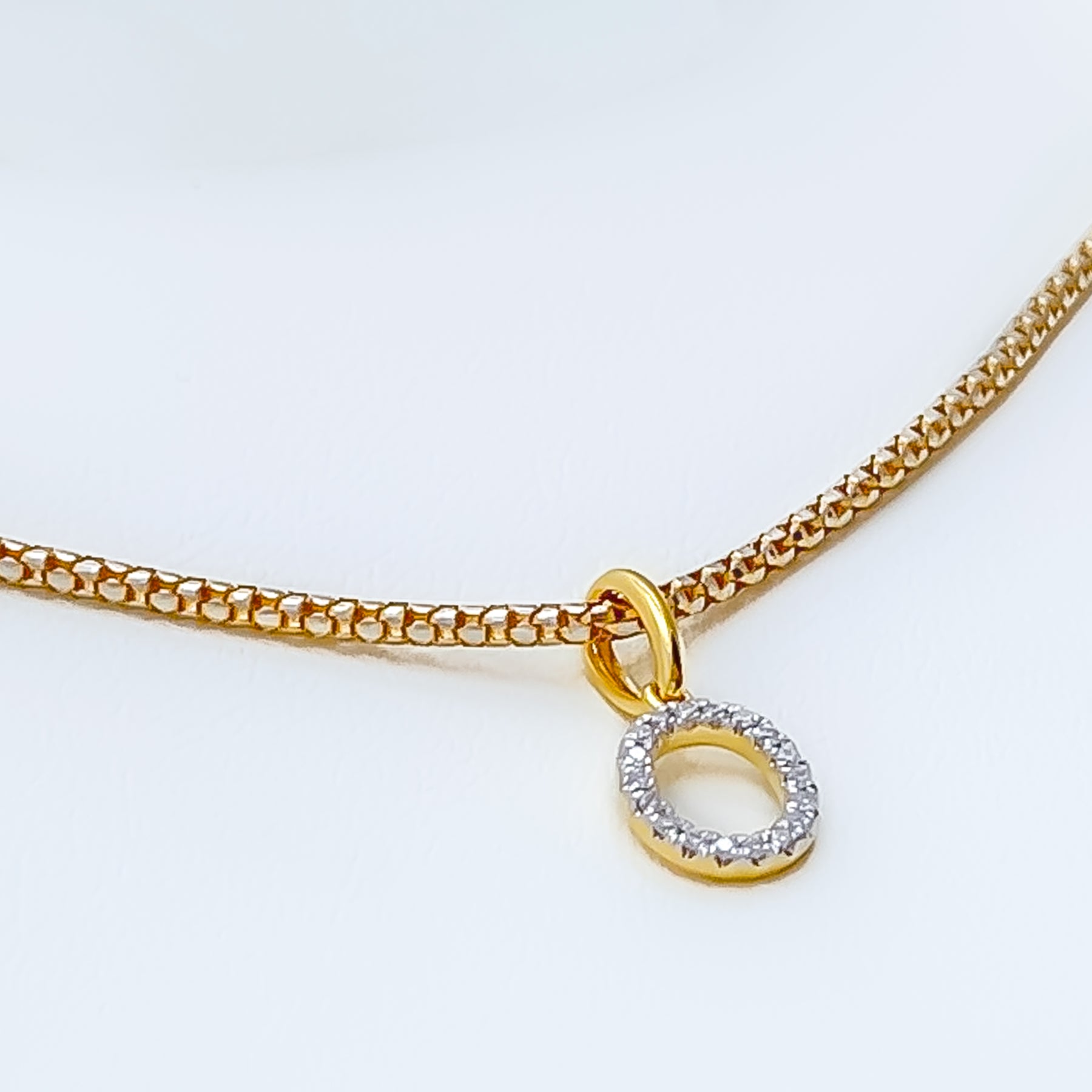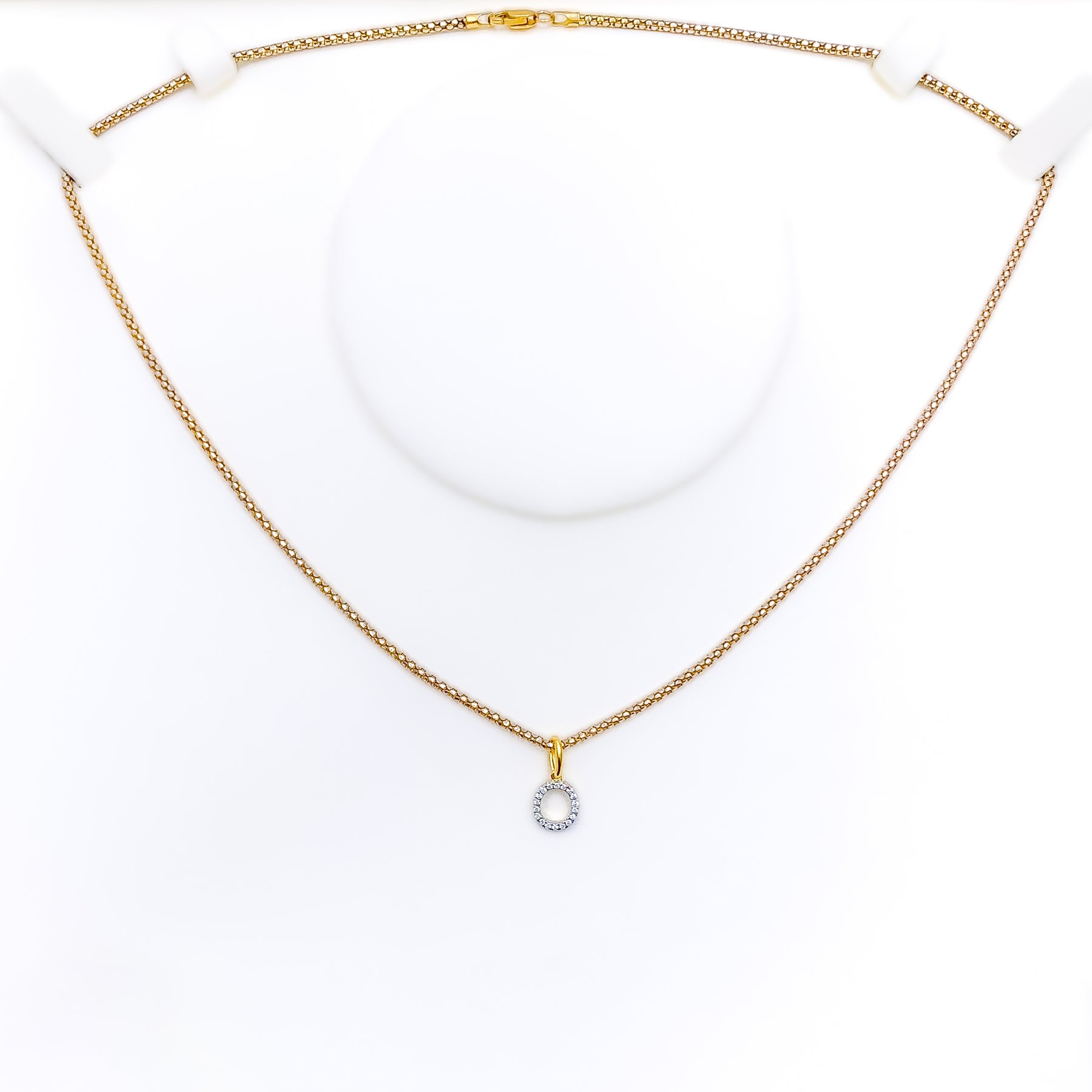Refined and radiant, this 18k yellow gold pendant features the letter O delicately accented with a 0.06ct VS-quality diamond for subtle brilliance. Weighing 0.62 grams and measuring 0.6 inches in length, it offers a graceful touch of personalization in a sleek silhouette. The polished gold finish adds timeless warmth and elegance. Chain not included, and it is GGL certified for assured quality and authenticity.