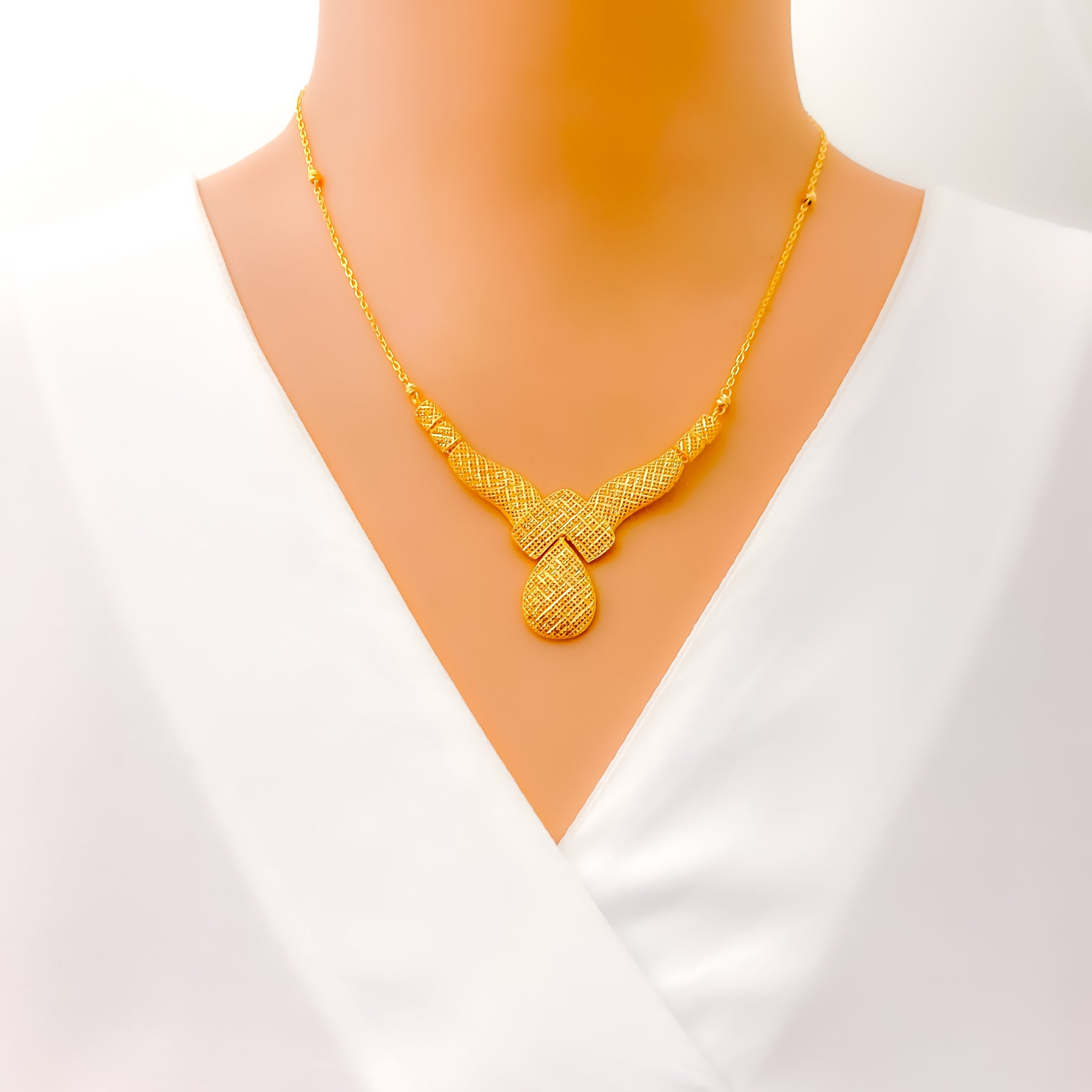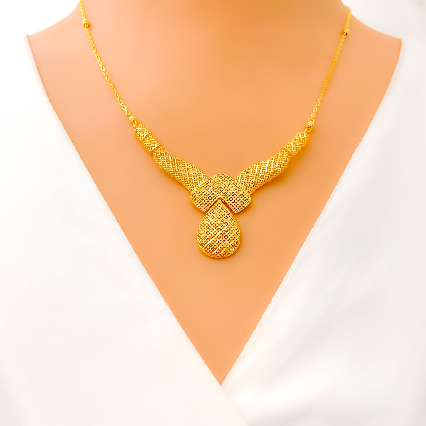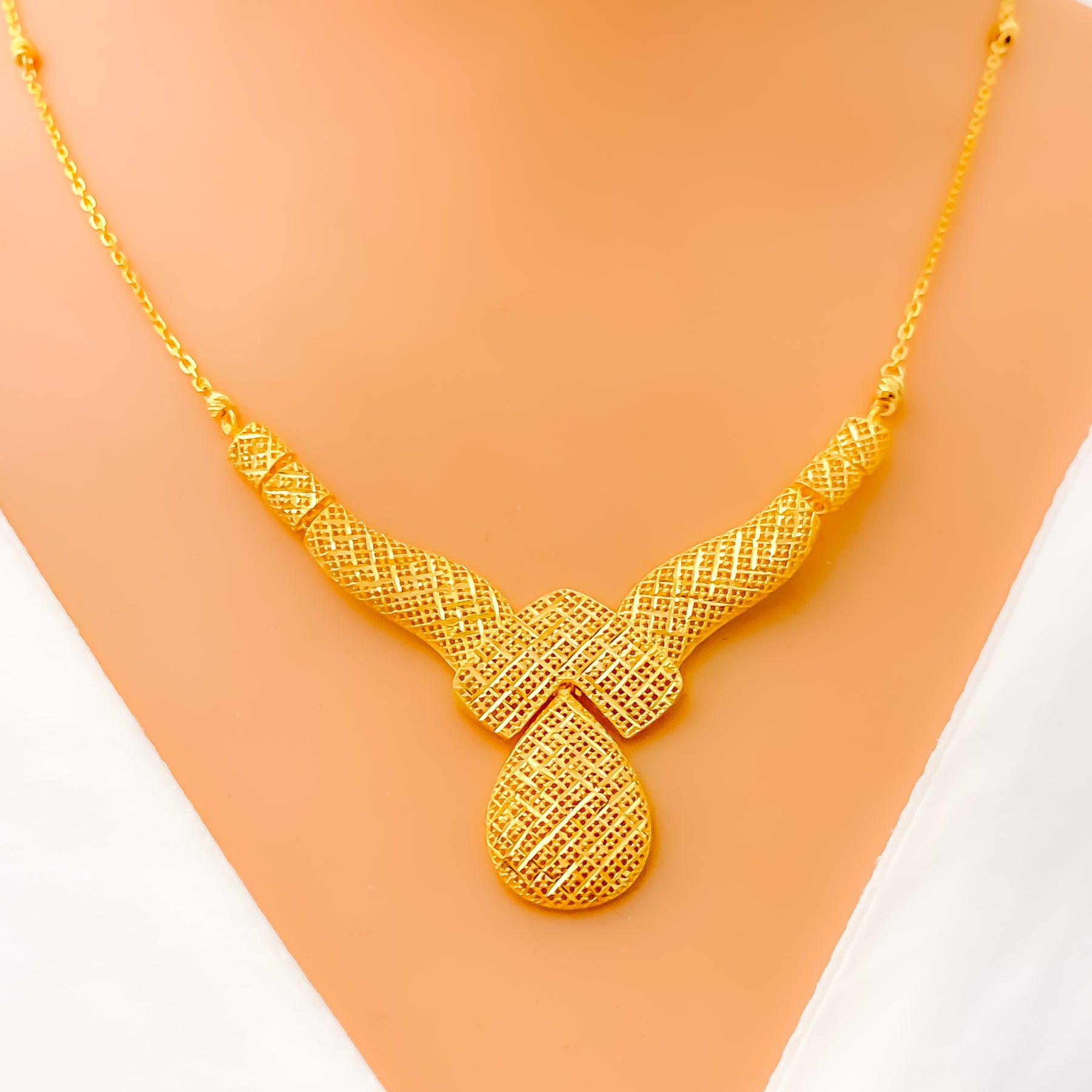 Gorgeous Tapering 22k Gold Netted Necklace Set