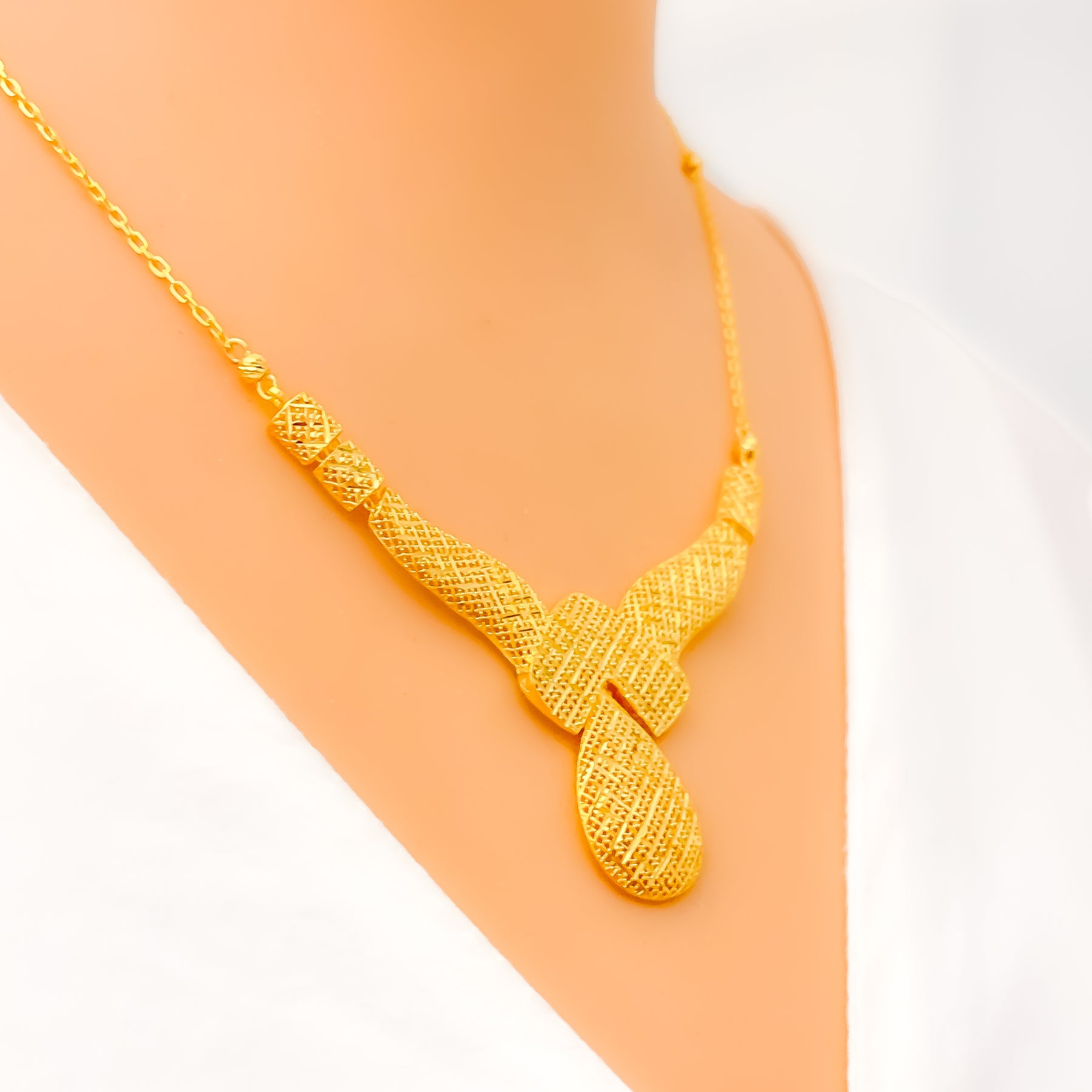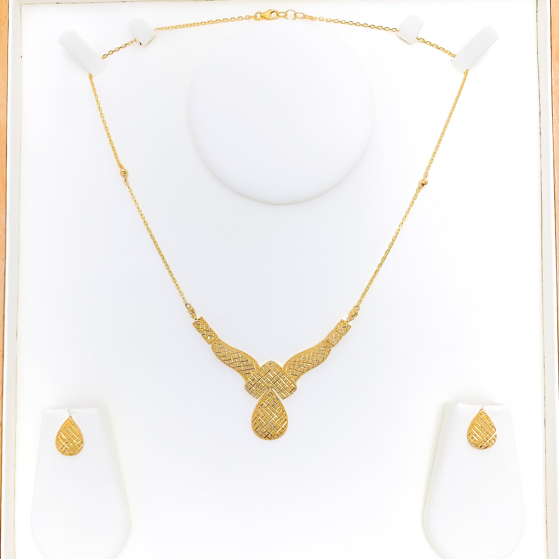 Asymmetrical Leaf Accented 22k Gold Necklace Set