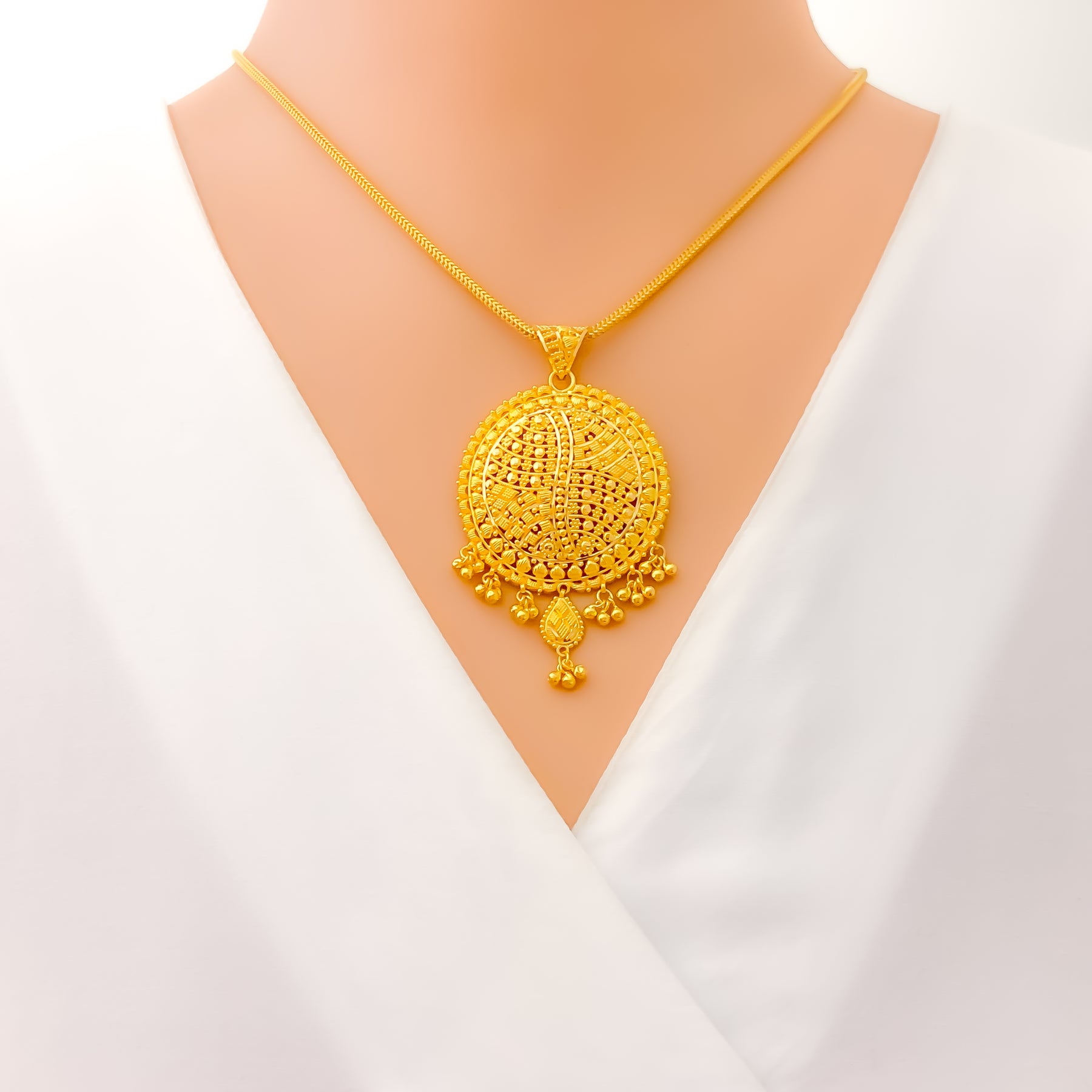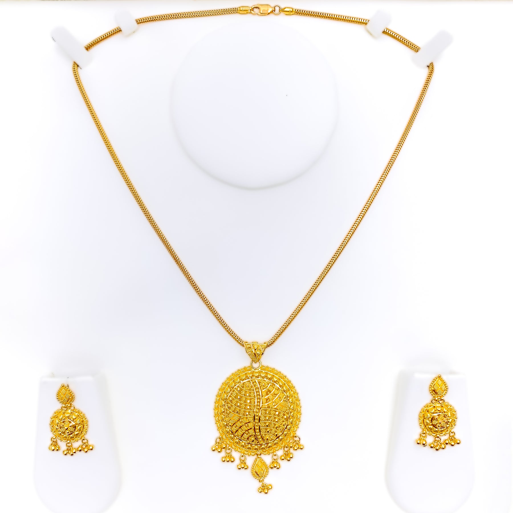 Ornamental Gleaming 22k Gold Round Pendant Set