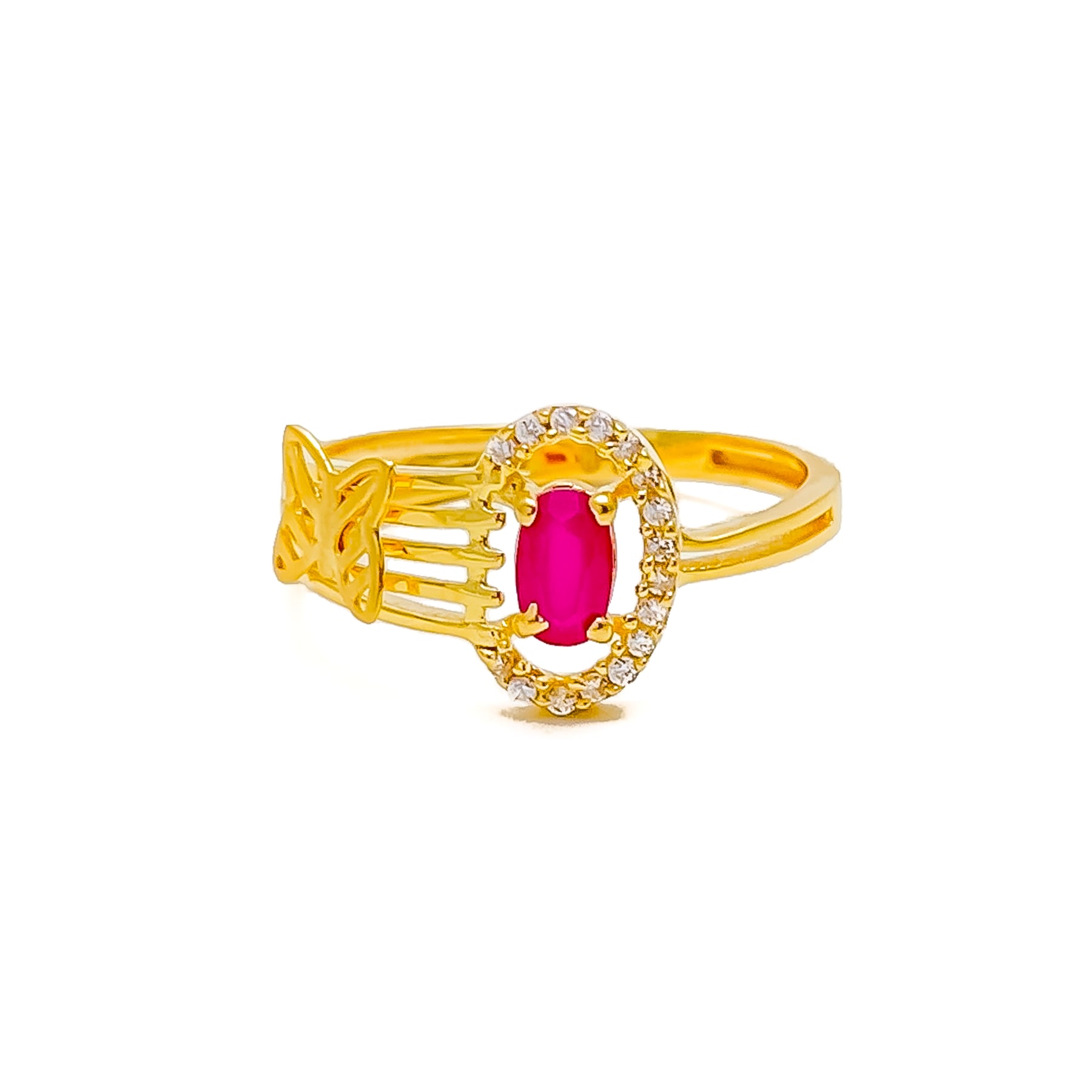 Gleaming with charm, this 22k gold ring captures attention through its radiant finish and glittering cubic zirconia detailing. Its 2.4-gram build offers a lightweight yet luxurious presence on the hand. Sized at 6.5, it can be resized to ensure an ideal fit. A perfect statement for those who favor understated opulence with a bold touch.