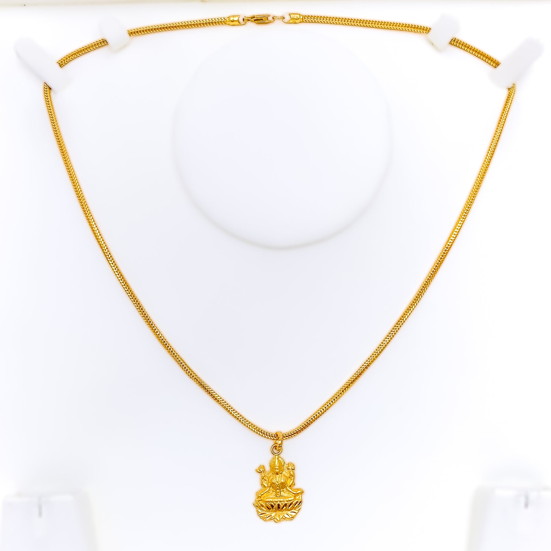 This elegant 22k yellow gold pendant, weighing 1.6 grams, showcases a classy design that radiates regal sophistication. The polished finish enhances its luminous brilliance, offering timeless charm. Measuring 1.1" in length, it provides a graceful and versatile presence. A refined accessory that beautifully blends traditional artistry with modern elegance, perfect for both everyday wear and special occasions, with chain not included.