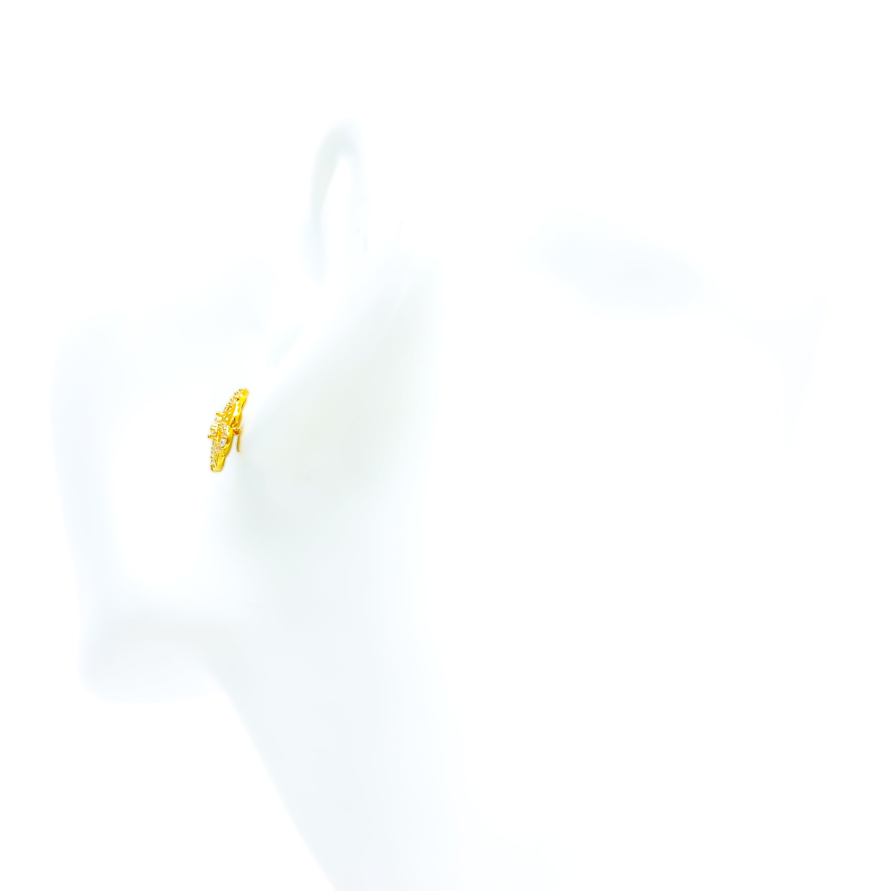 Opulent and eye-catching, these 22k gold earrings bloom with radiance and refined artistry. Weighing 4.5 grams, their polished yellow gold finish enhances the brilliance of the sparkling cubic zirconia accents. The 0.5-inch tops shimmer with graceful allure. A captivating blend of luxury and timeless floral-inspired charm.