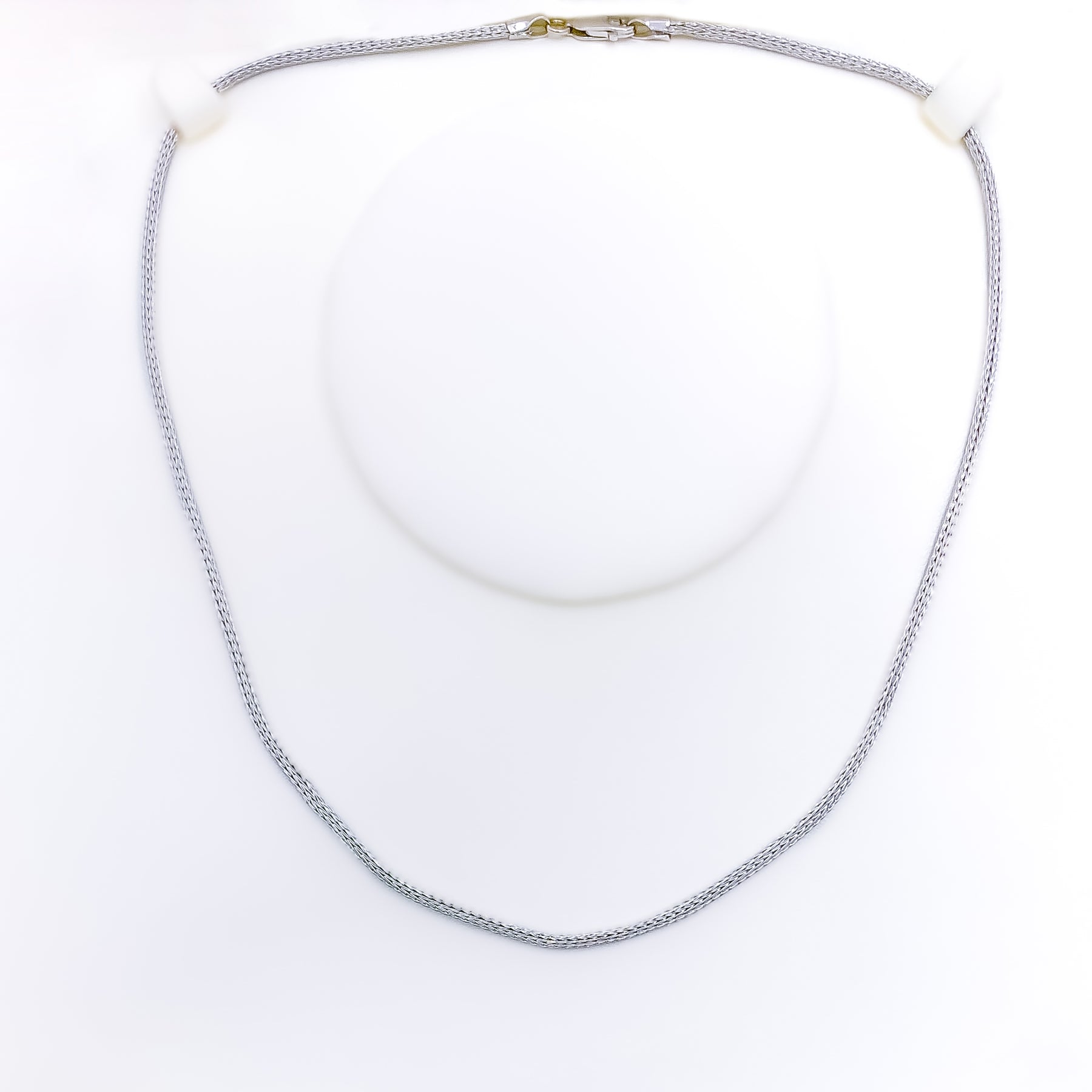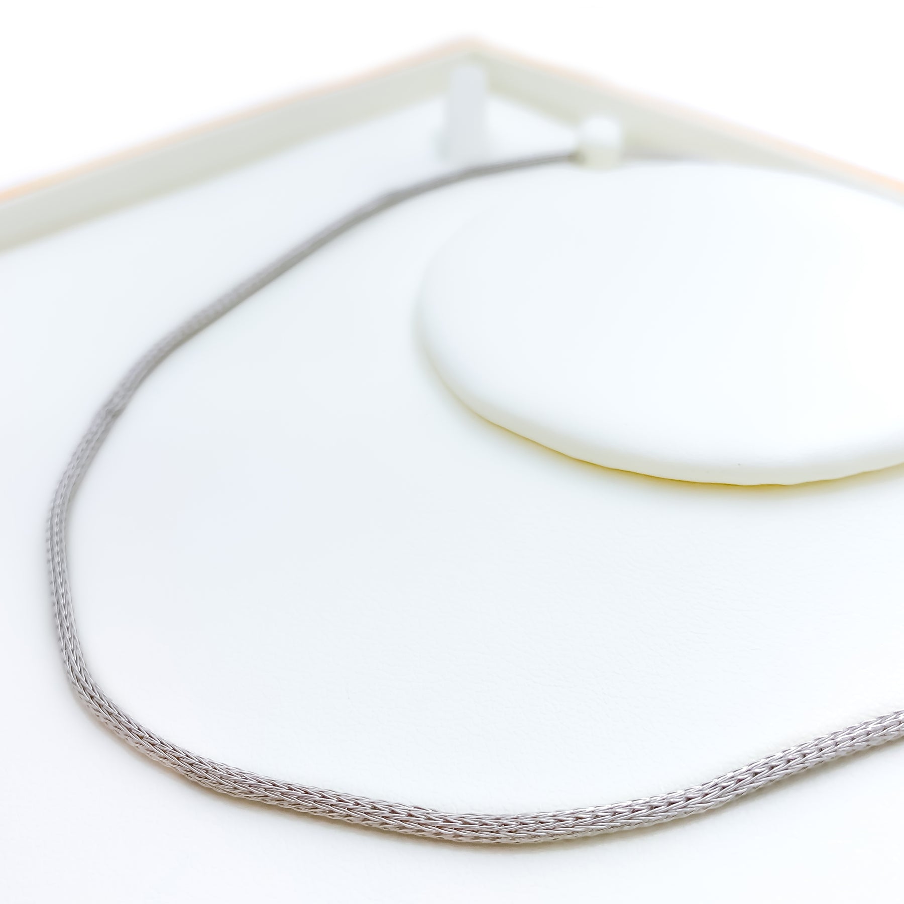 This refined 22k white gold chain, weighing 6.1 grams, features a classic rounded dragon rope design that exudes sophistication. Measuring 16" in length with a 1.75mm width, it offers durability with timeless appeal. The polished finish enhances its radiant luster, secured with a lobster lock. A versatile accessory that brings modern elegance to any collection.