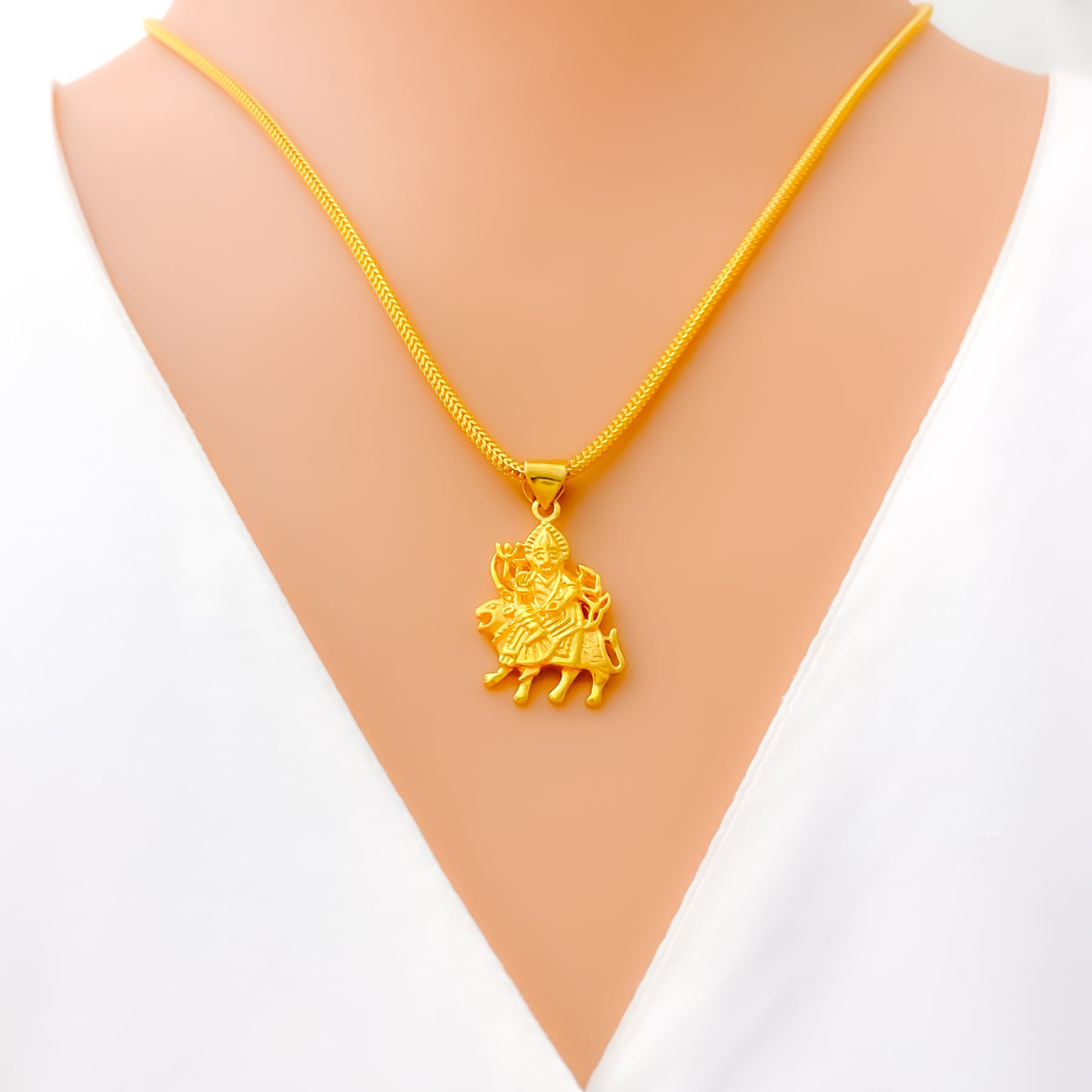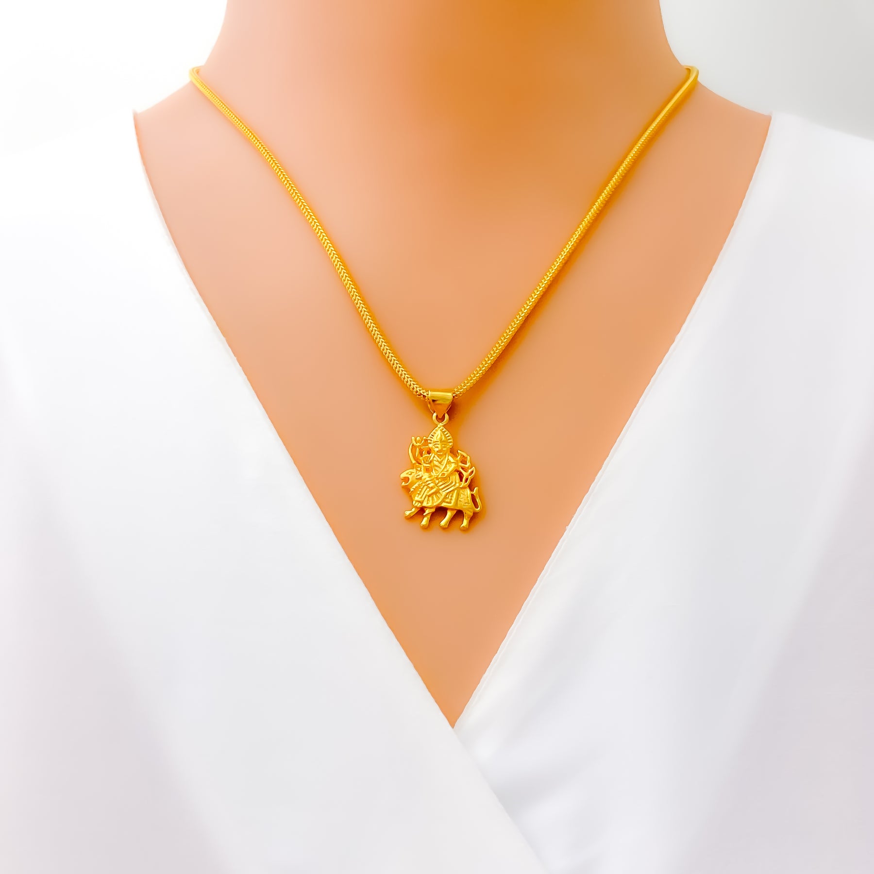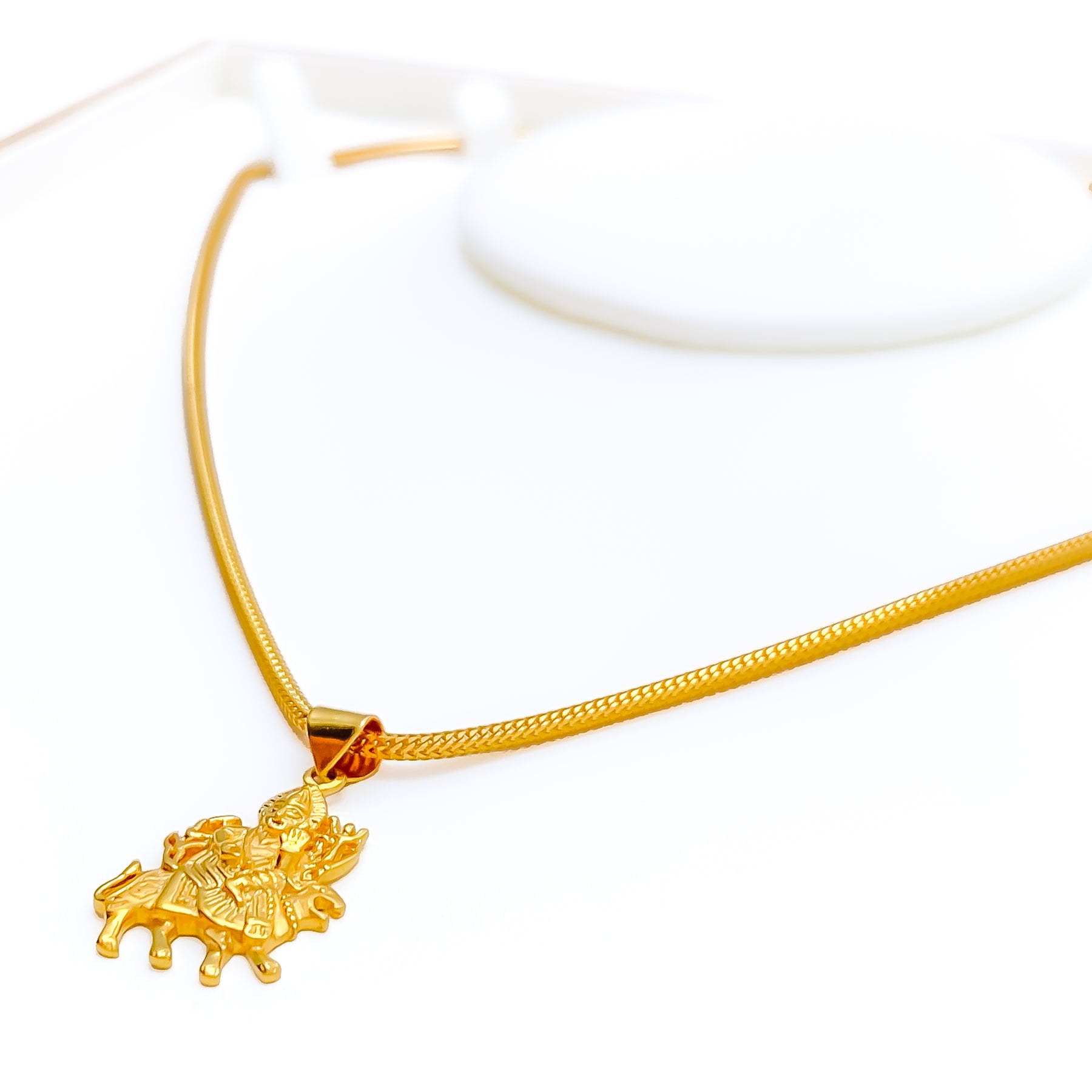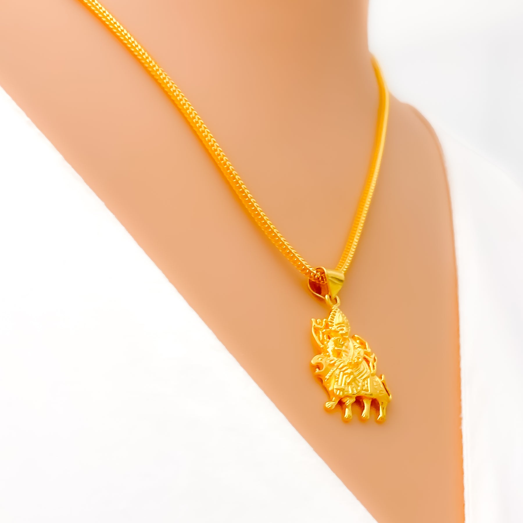 This elegant 22k yellow gold pendant, weighing 3.5 grams, showcases a design that radiates ethereal beauty with shimmering brilliance. The polished finish enhances its golden glow, offering timeless sophistication. Measuring 1.2" in length, it provides a graceful yet versatile presence. A refined accessory that perfectly blends delicate artistry with classic elegance, ideal for both daily wear and special occasions, with chain not included.