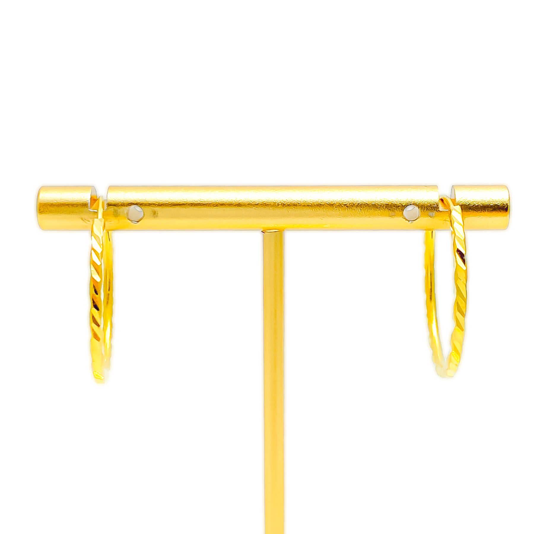 Crafted in 22k yellow gold with a weight of 2.6 grams, these elegant hoops radiate luminous brilliance. The polished finish enriches their radiant design, blending timeless elegance with refined charm. Measuring 1 inch in diameter, they provide versatile appeal with lightweight comfort. Durable and stylish, they are a graceful jewel suited for both everyday wear and festive occasions.