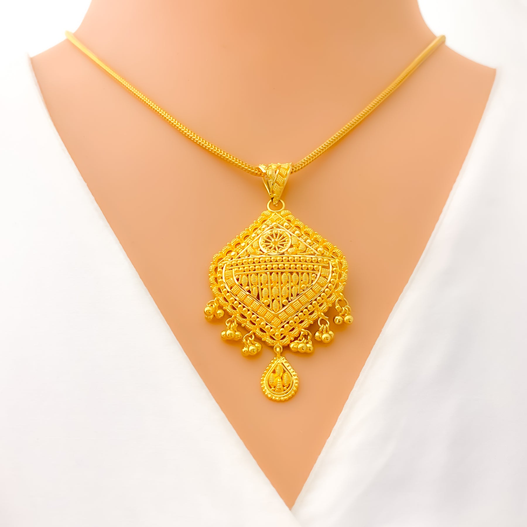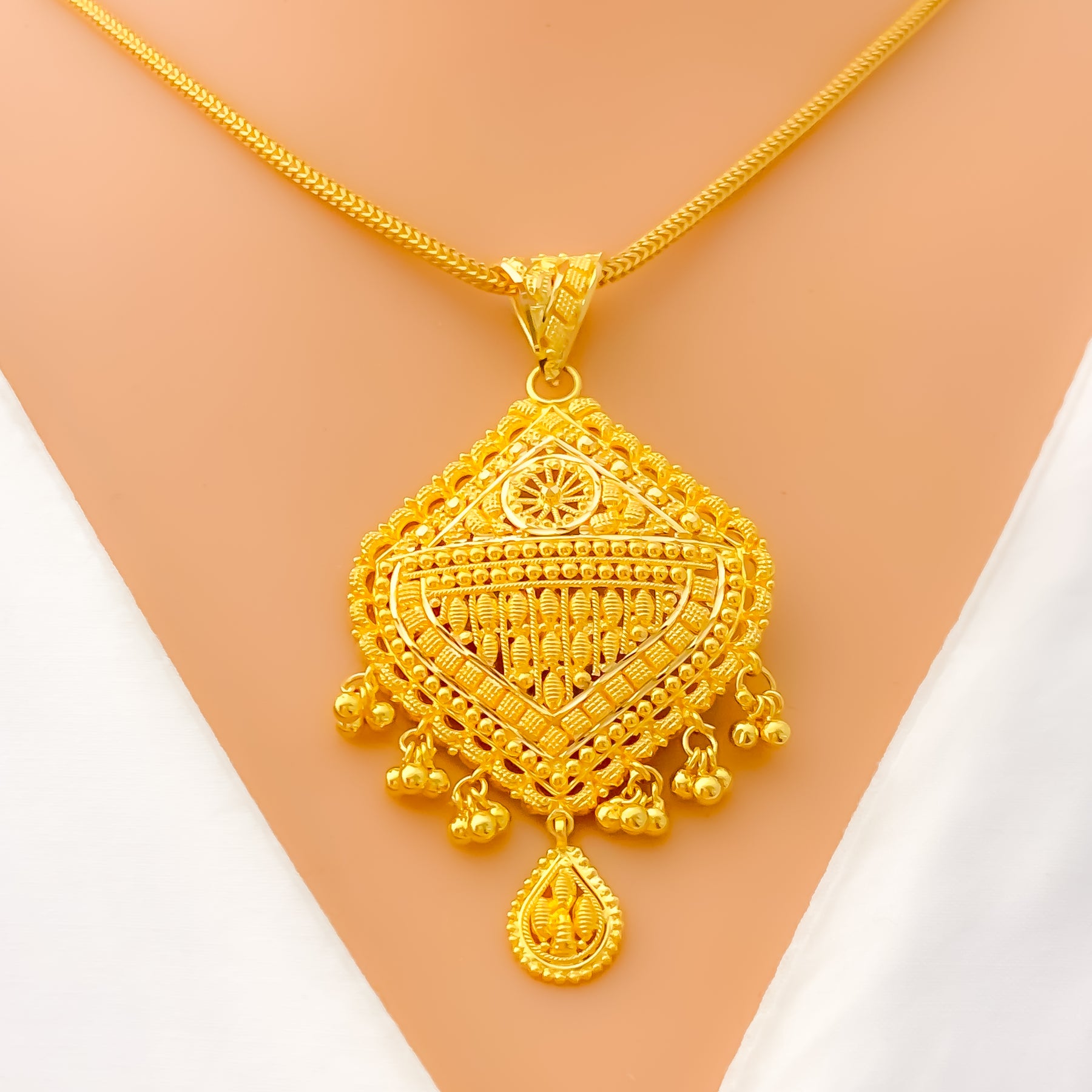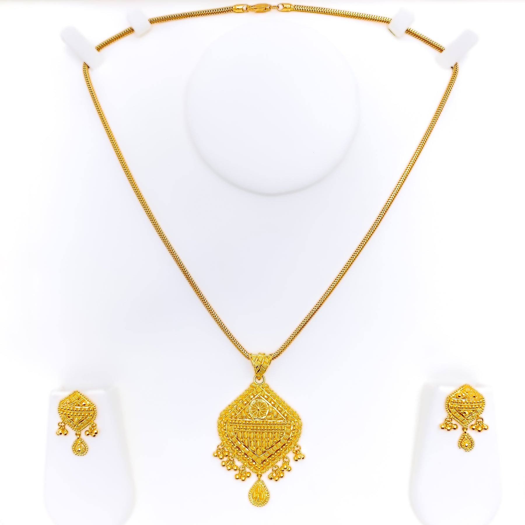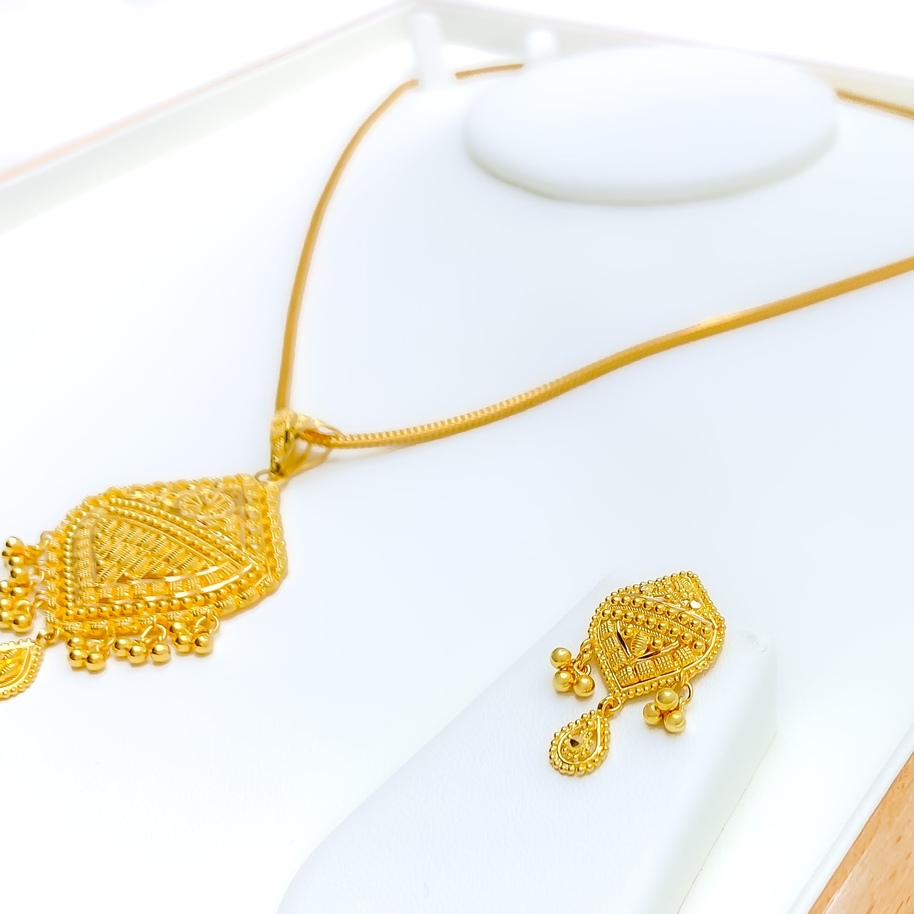 Striking Dressy Tasseled 22k Gold Pendant Set