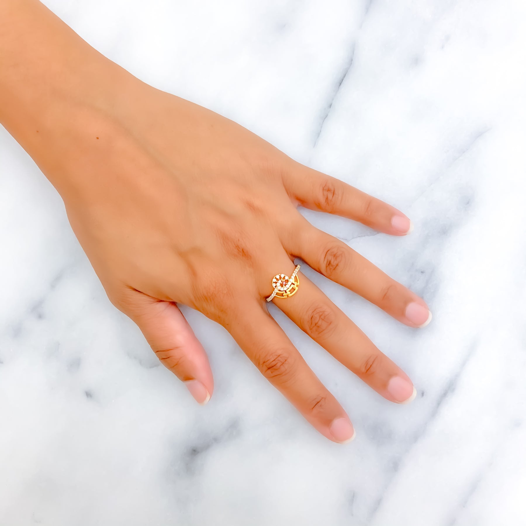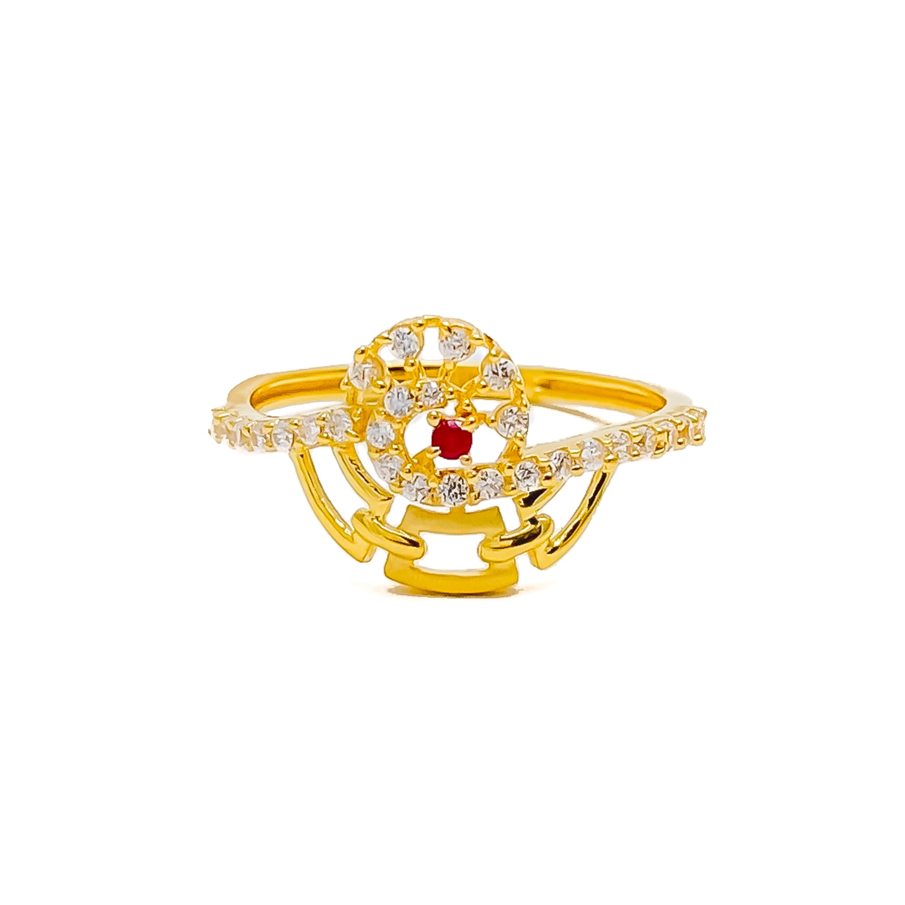 Refined with elegance, this 22k gold ring boasts a dainty design highlighted by shimmering cubic zirconia. Its radiant yellow gold finish offers a timeless yet modern appeal for any occasion. Lightweight and easy to wear, it's a graceful choice for subtle sophistication. Ring resizing is available for a perfect fit.