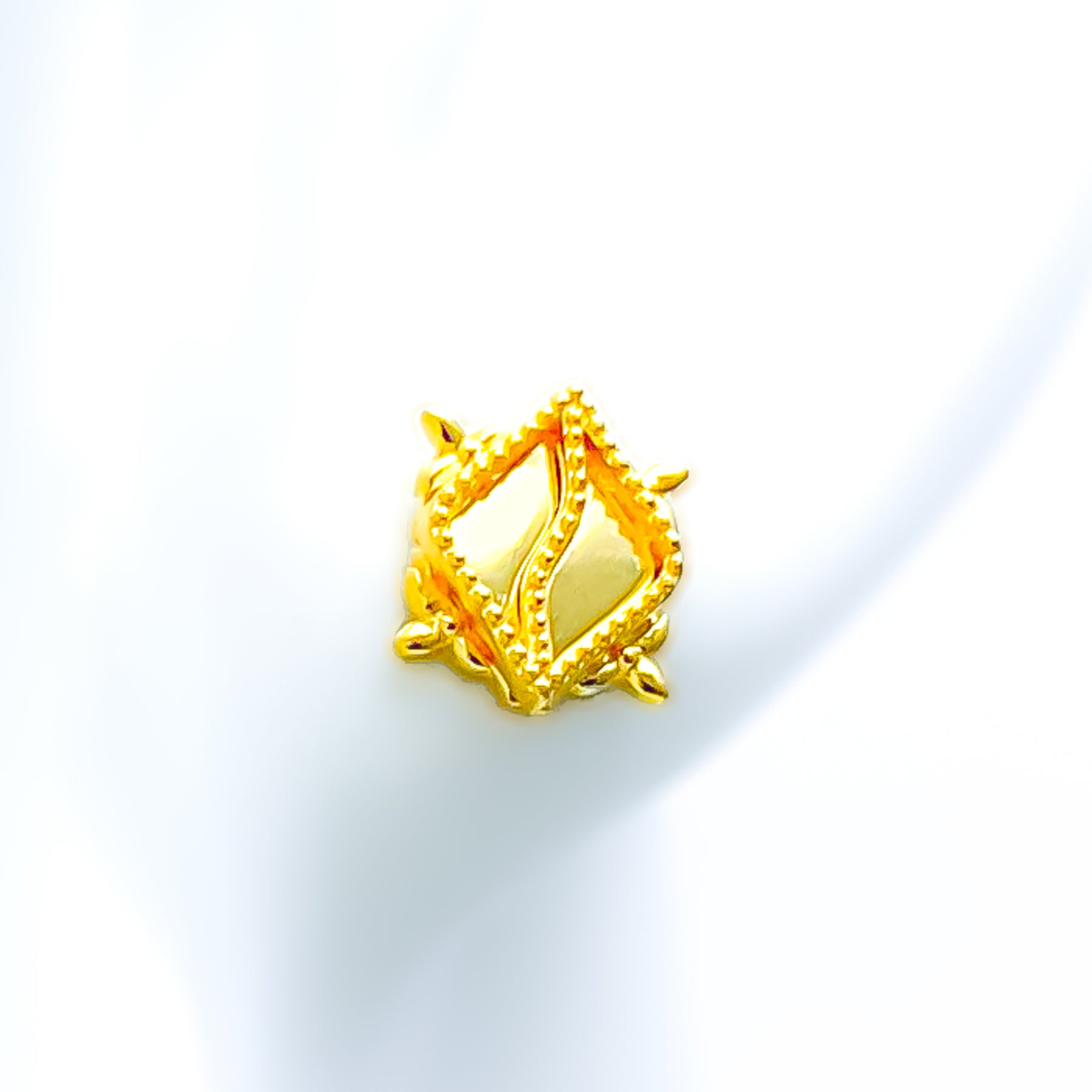 Elegantly crafted, these 21k gold earrings captivate with their detailed design and radiant finish. Weighing 1.9 grams, they embody a perfect fusion of sophistication and artistry. The polished yellow gold surface enhances their luminous, timeless glow. Measuring 0.3 inches in diameter, they’re a graceful accent of refined beauty.