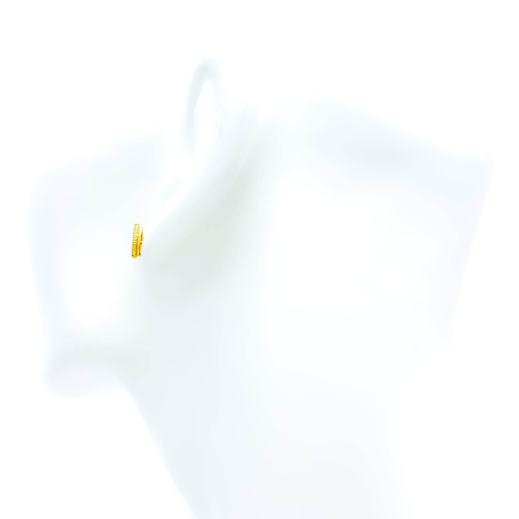 Refined and classic, these 21k gold earrings exude enduring grace through their smooth, mirror-like polish. Weighing 2.1 grams, they offer a luxurious balance of shine and simplicity. The radiant yellow gold finish brings a rich, luminous warmth. At 0.2 inches in diameter, they’re a subtle yet elegant everyday essential.