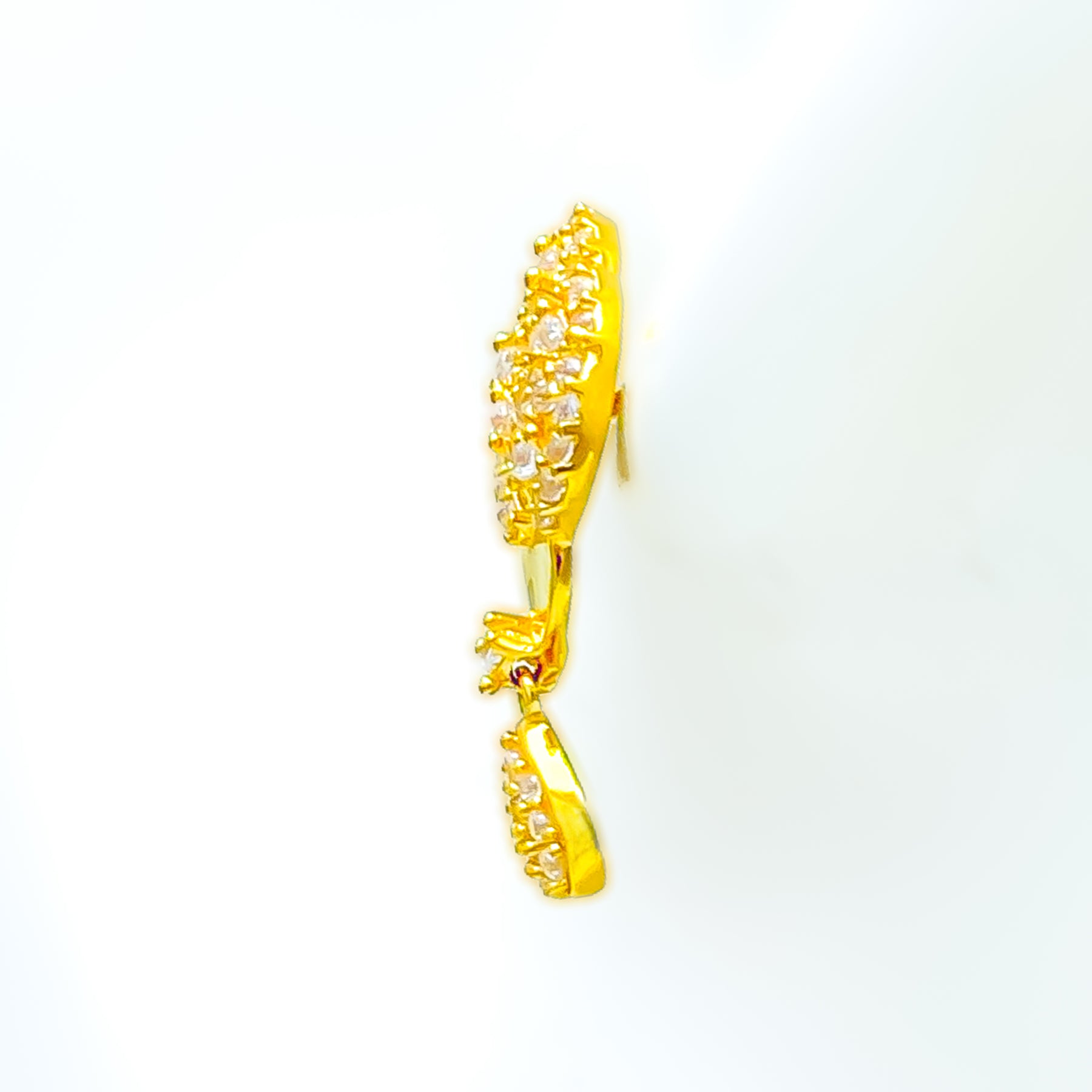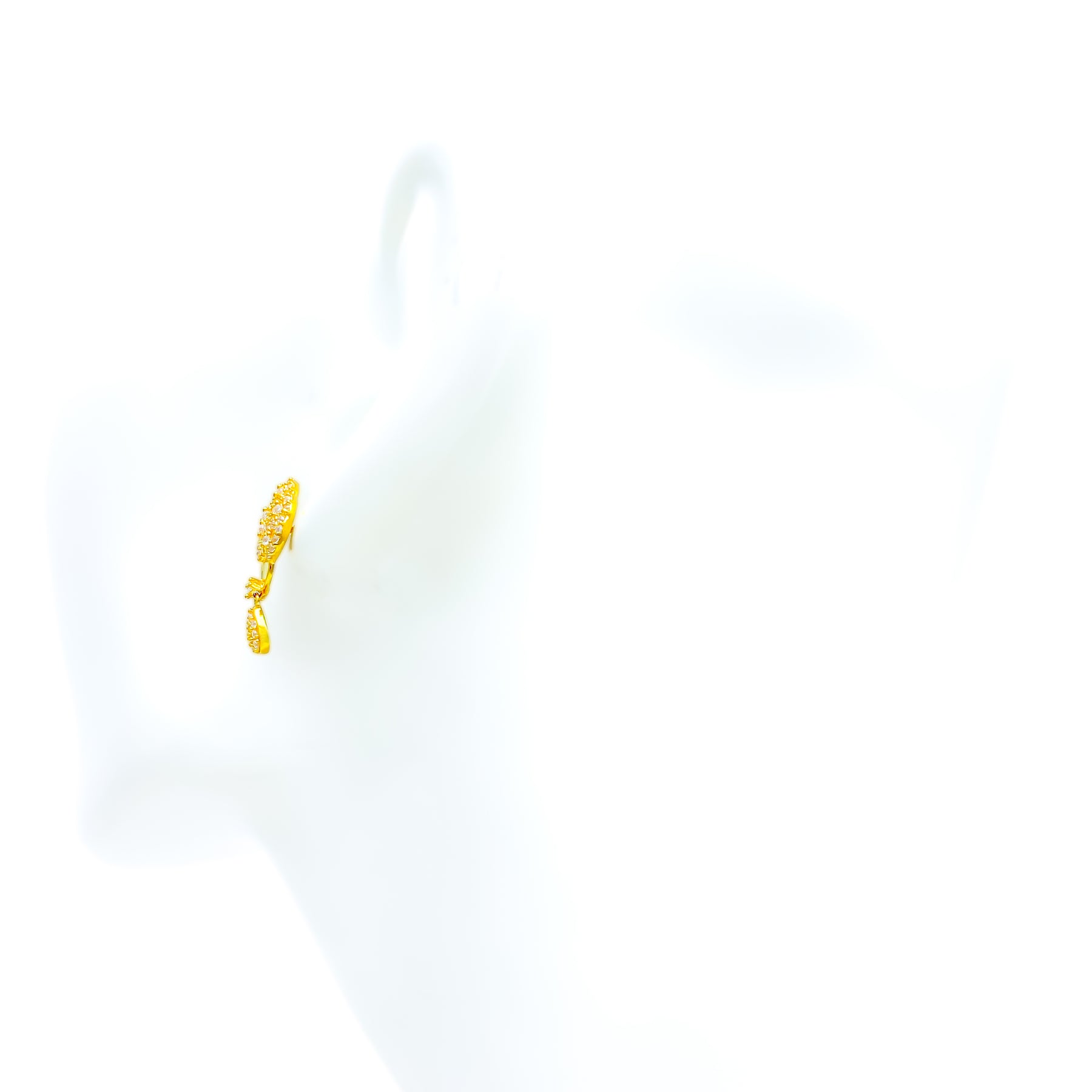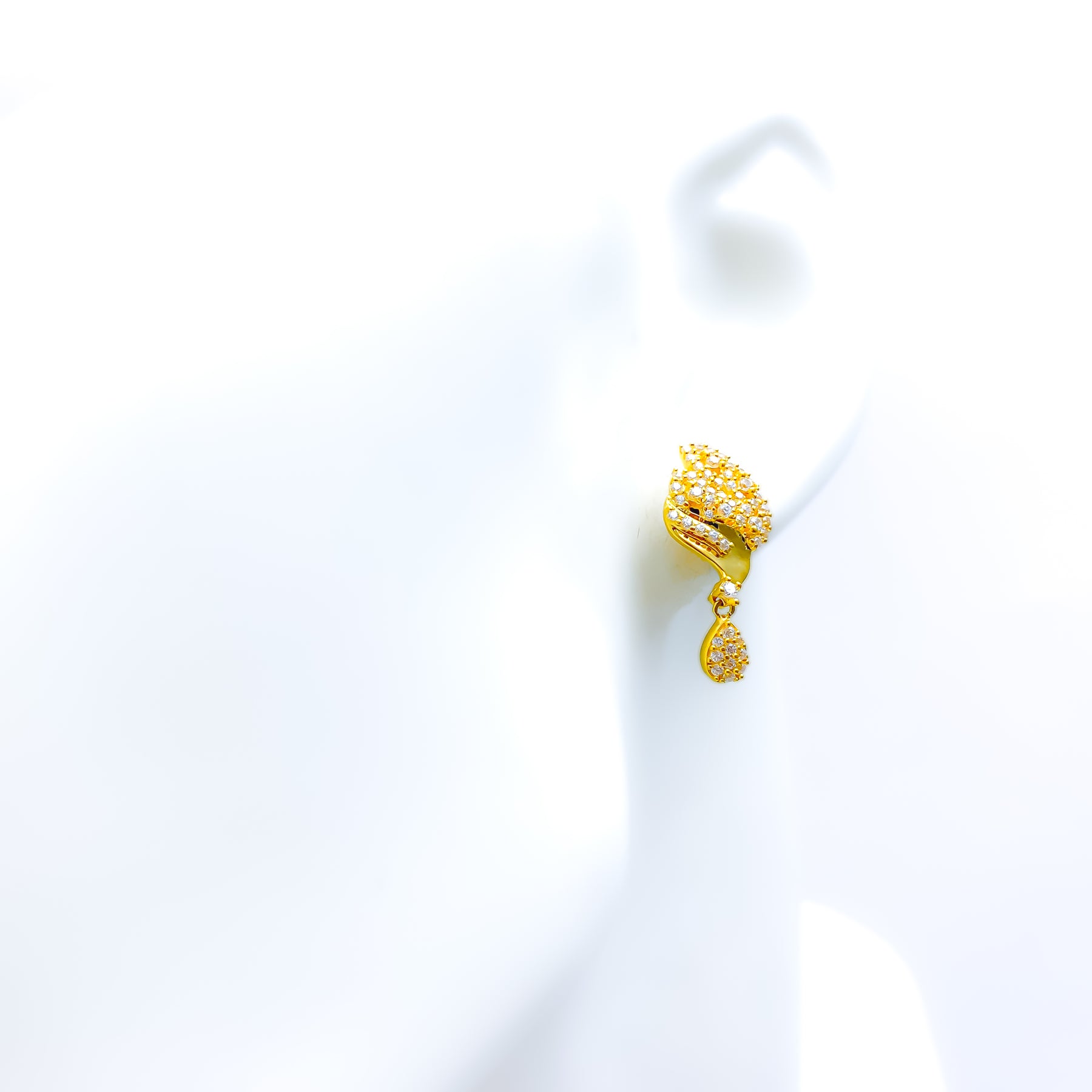 Radiant and eye-catching, these 22k gold earrings glisten with cubic zirconia brilliance set against a polished yellow gold backdrop. Weighing 5.2 grams, they offer a captivating balance of sparkle and sophistication. The 0.4-inch tops bring a refined glow to any occasion. Perfect for timeless, graceful adornment.