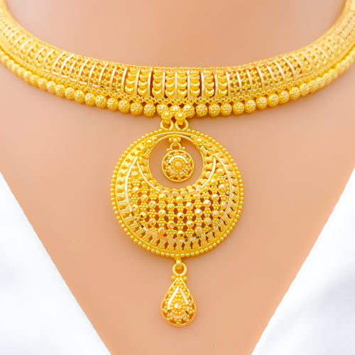 Glistening Checkered 22k Gold Drop Choker Necklace Set
