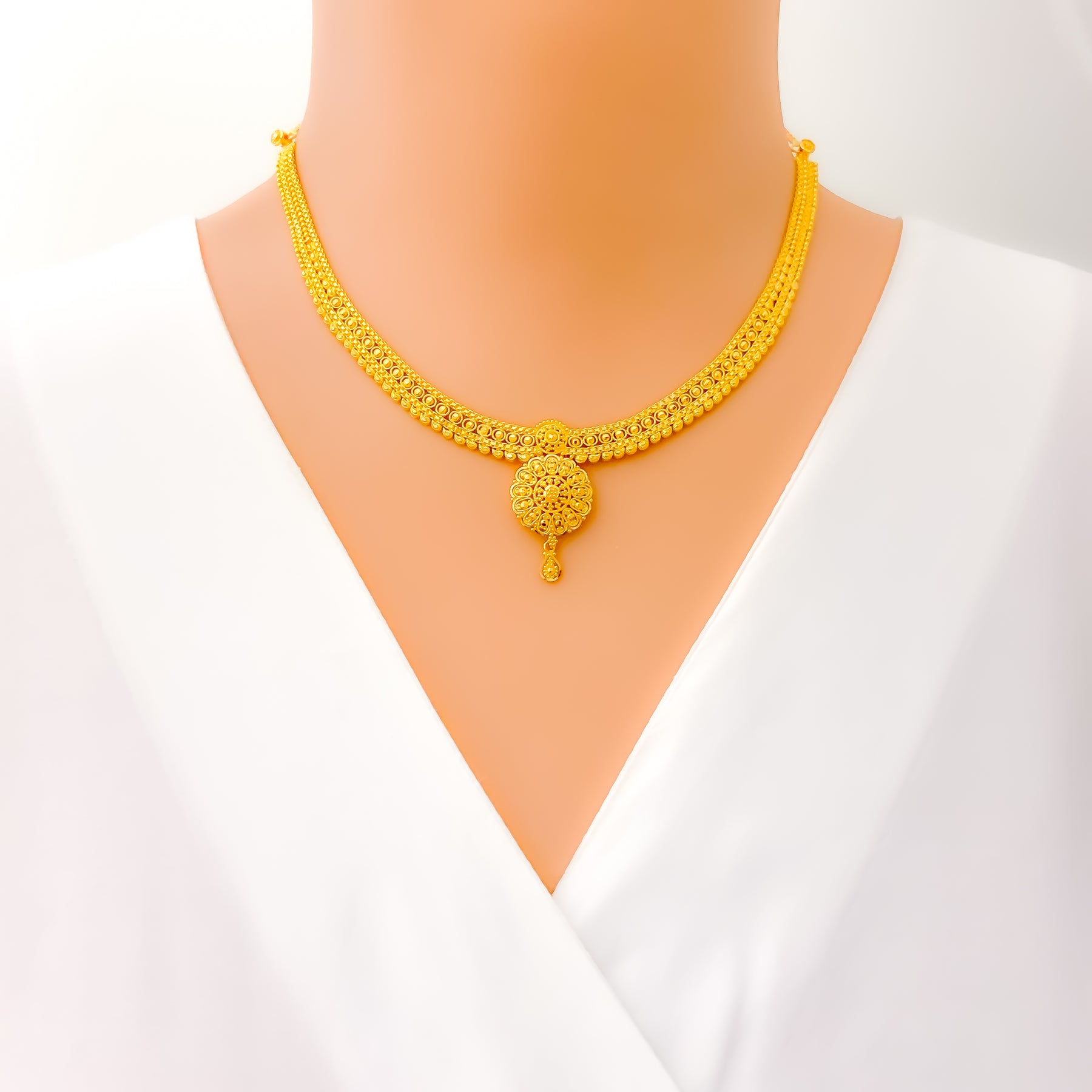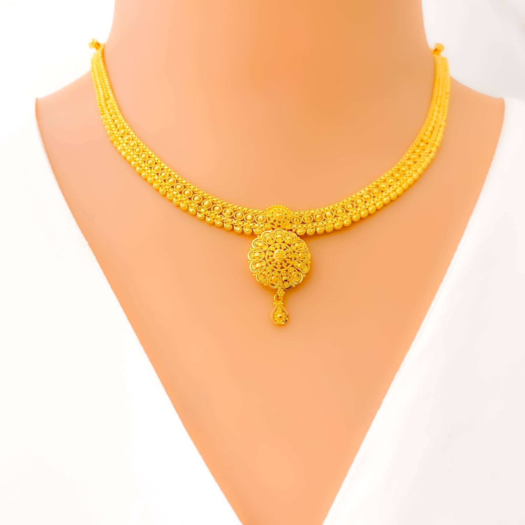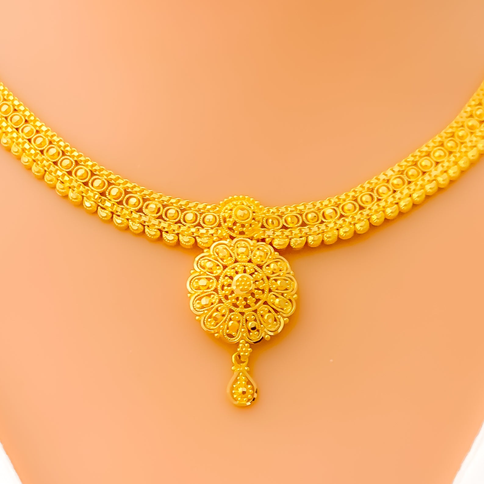 Refined Regal Drop 22k Gold Necklace Set