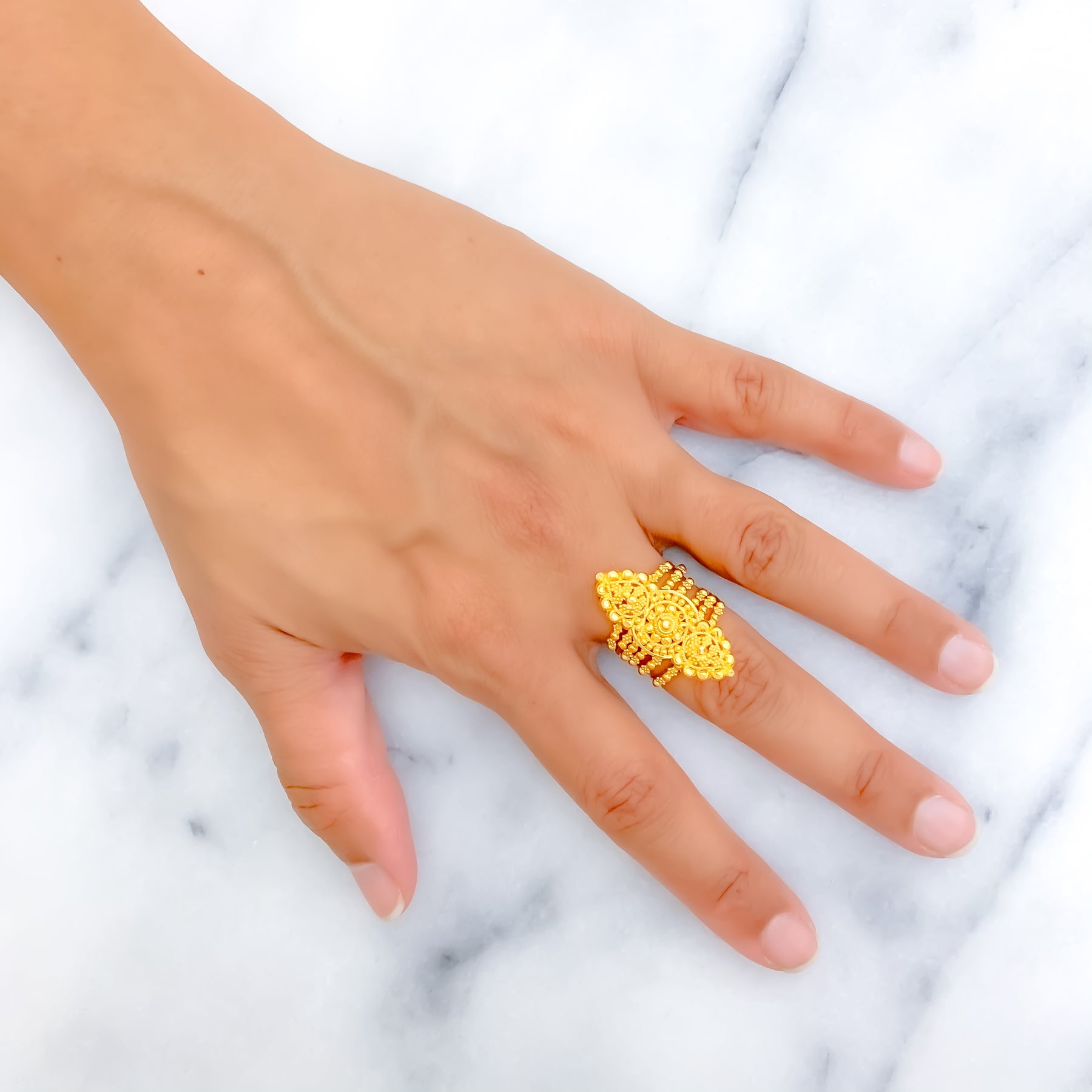 Showcasing a bold silhouette with radiant yellow-gold tones, this striking piece highlights its substantial 8.6-gram weight for an elevated, luxurious presence. The smooth finish enhances its modern appeal, making it a standout accessory for any collection. Sized at 6, it delivers a secure and comfortable fit that feels naturally elegant. With no resizing available, it remains a perfectly preserved statement of timeless style.