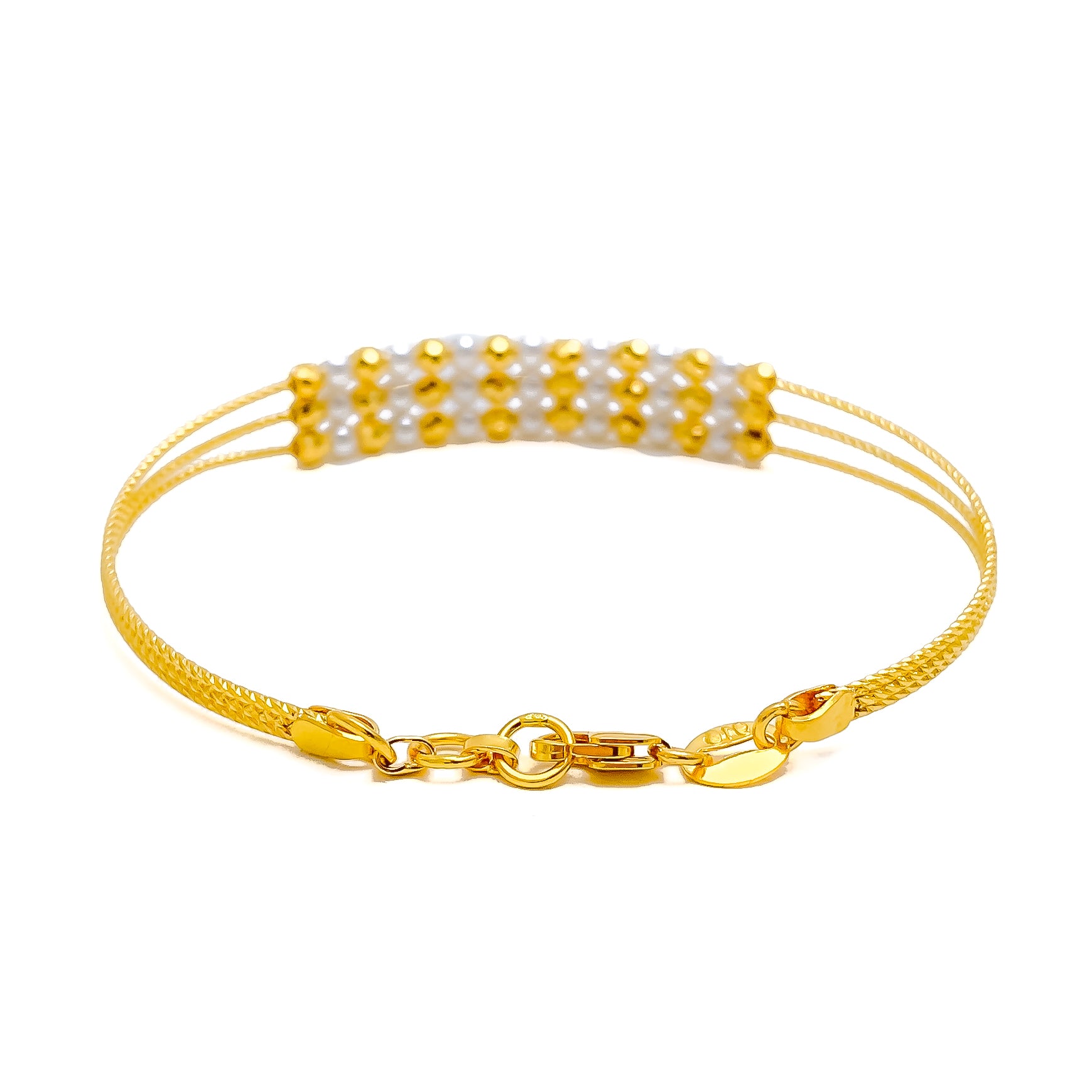 Decorative Triple Lined 22k Gold Flexi Bangle Bracelet W/Pearl