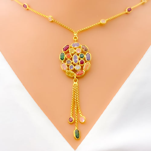 Dazzling Elegant Floral 21k Gold CZ Necklace