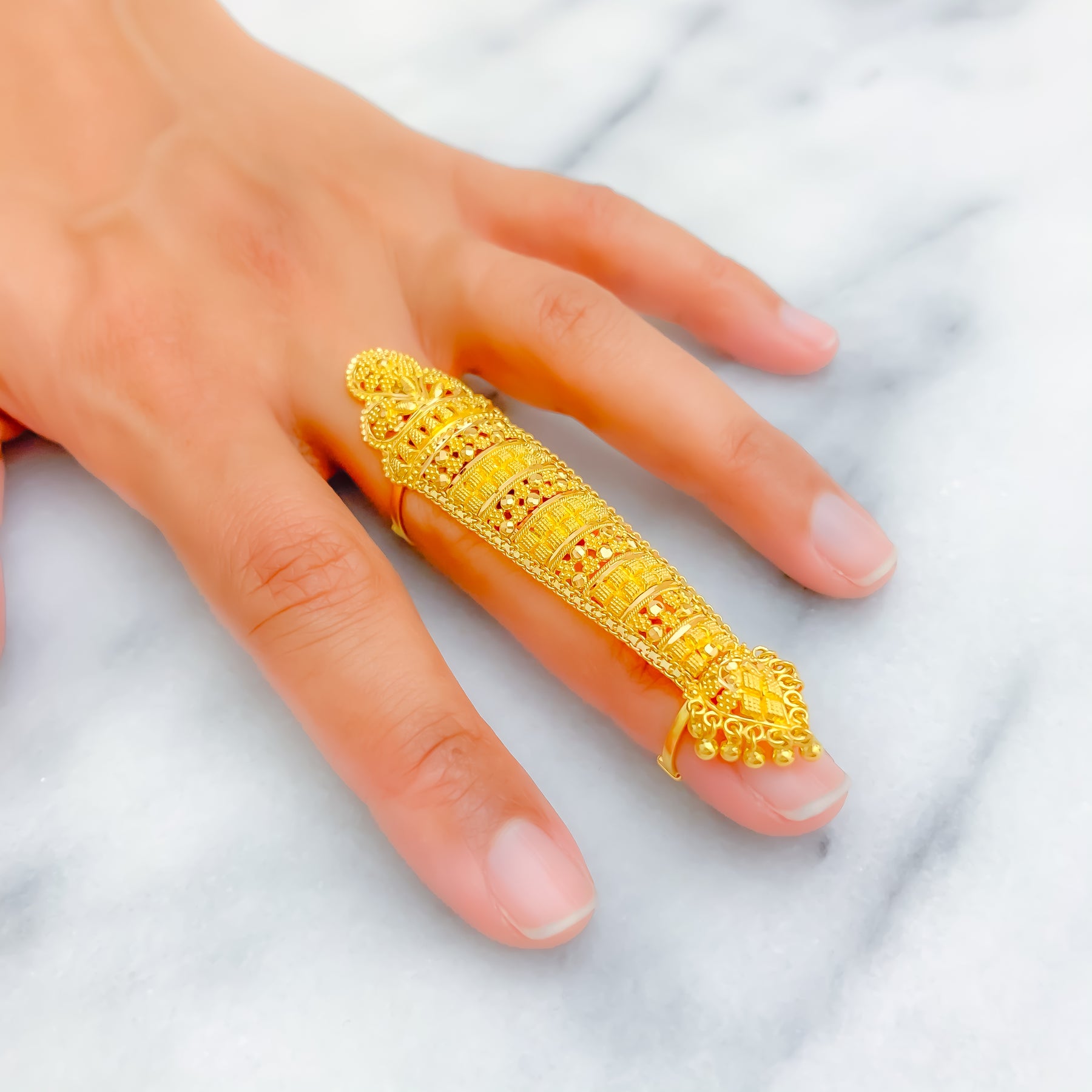 Bold Impeccable Embellished 22k Overall Gold Finger Ring