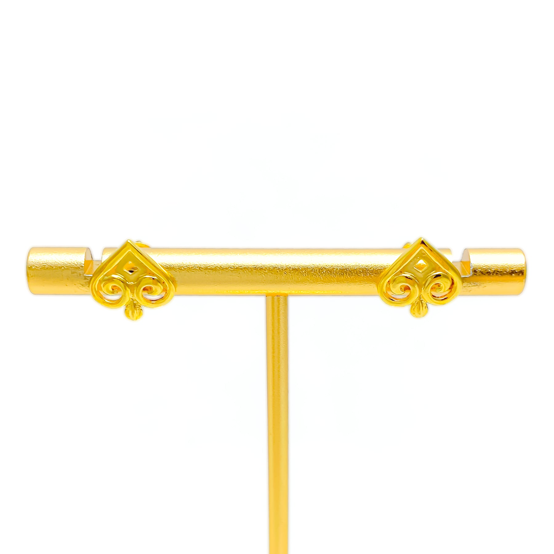 Graceful and refined, these 22k gold top earrings blend intricate design with radiant polish for timeless charm. Weighing 1.8 grams, the 0.4-inch length highlights their elegant craftsmanship in rich yellow gold. Perfect for daily wear or special moments, they radiate effortless sophistication and classic beauty.