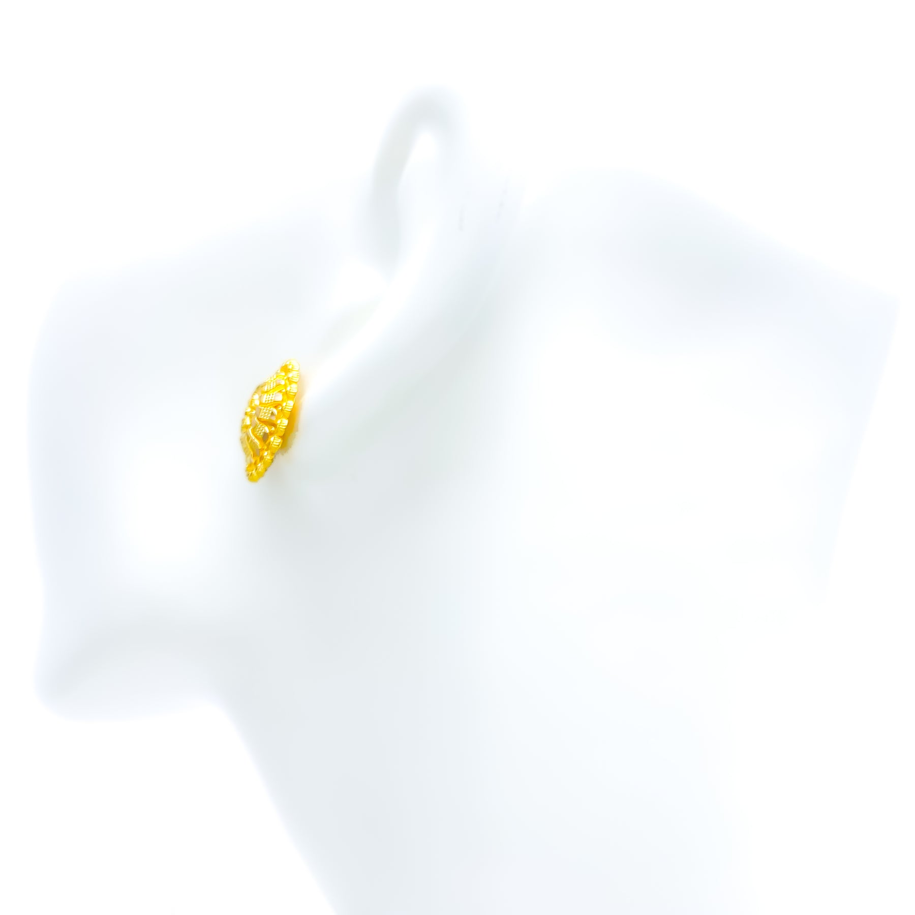 Exquisitely designed, these 22k gold earrings radiate refined sophistication with their smooth, polished allure. Weighing 5.4 grams, they balance timeless elegance with luxurious craftsmanship. The brilliant yellow gold finish enhances their luminous depth and classic charm. Measuring 0.75 inches in diameter, they’re a perfect expression of graceful opulence.
