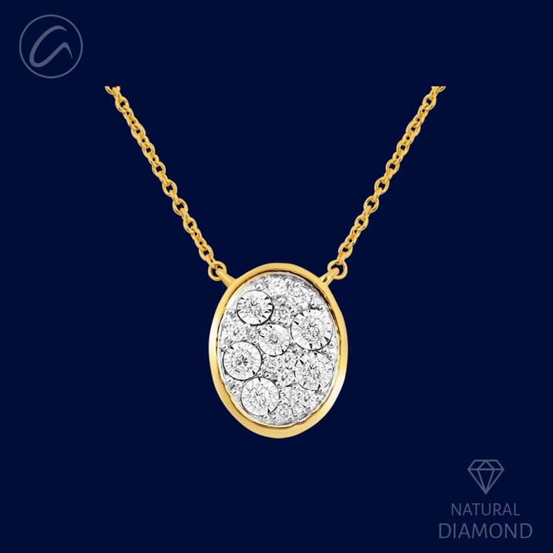 Expertly crafted in 18k gold, this exquisite necklace set radiates a modern oval charm. Weighing 7.9 grams, its yellow gold finish enhances the brilliance of 0.68-carat round brilliant-cut diamonds. Graded G-H in color and VS in clarity, these dazzling stones create an elegant and contemporary design. The 18-inch necklace features a 0.6-inch drop length, adjustable 2-inch links, and secures with a lobster ring lock. Complementing the set, matching earrings measuring 0.5 inches are secured with screw-back posts. Certified by GGL, this refined ensemble blends sleek sophistication with timeless beauty, making it an exceptional choice for those who appreciate stylish and luxurious jewelry.