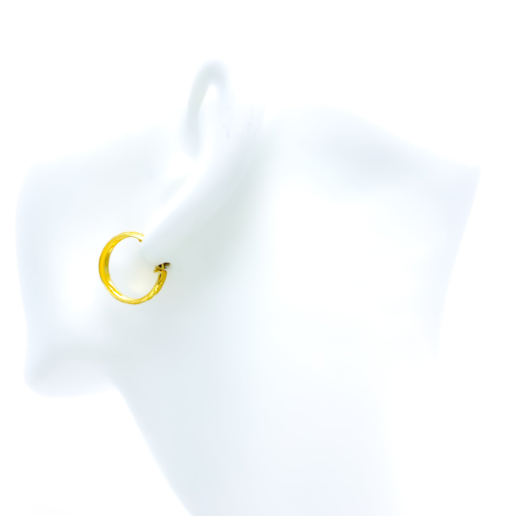 Exuding timeless grandeur, these 22k gold hoops showcase intricate engraved artistry that enhances their radiant appeal. Weighing 2.8 grams with a balanced 0.75-inch diameter and length, they offer both elegance and everyday versatility. The polished yellow gold finish adds depth and sophistication, making them a refined statement of luxury.