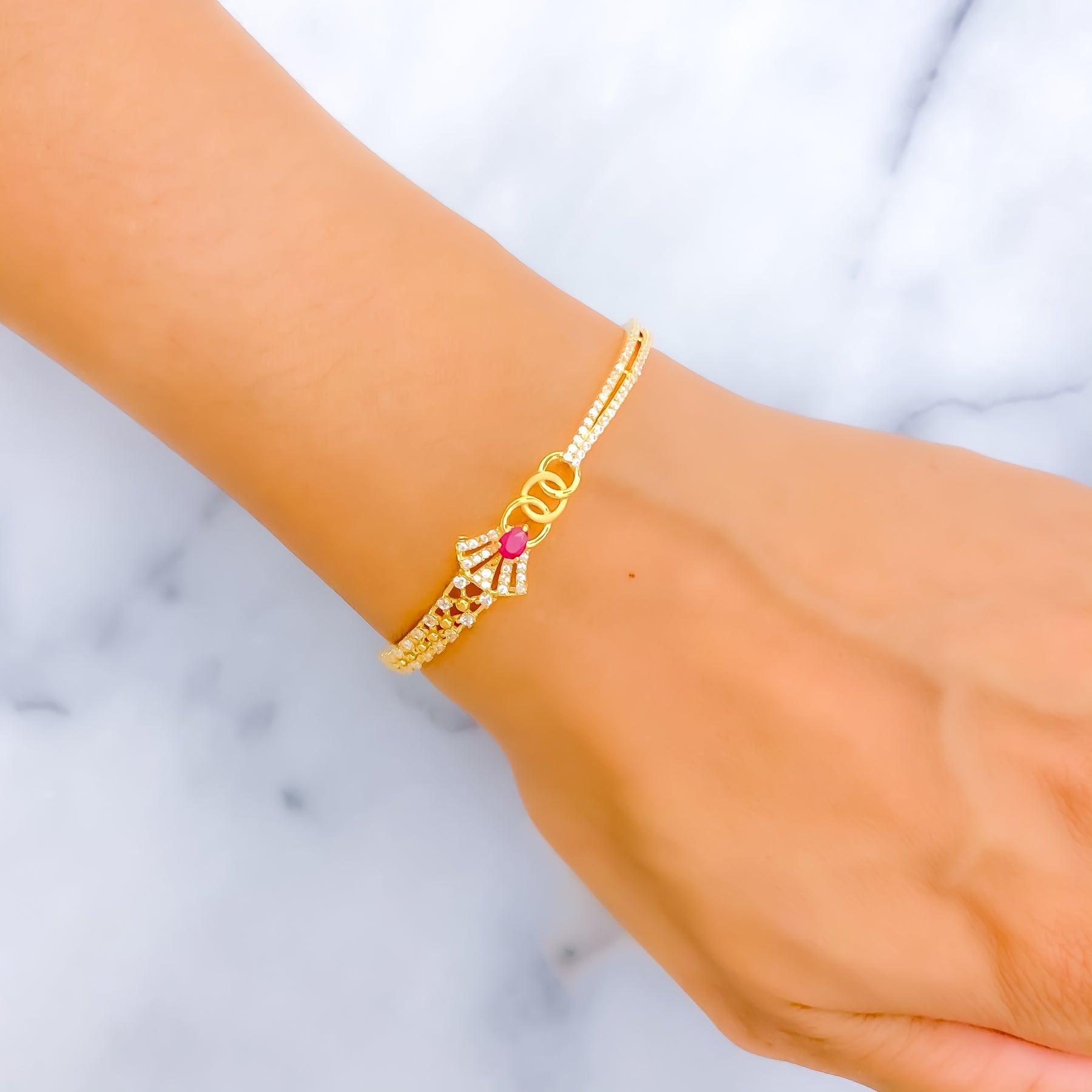 Graceful Dazzling 22k Gold CZ Bangle Bracelet