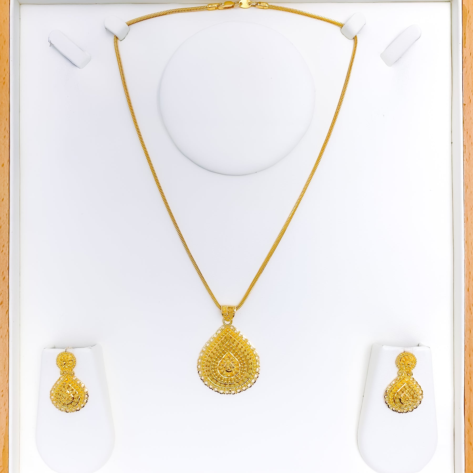 Dual Tone Marquise Leaf 22K Gold Pendant Set