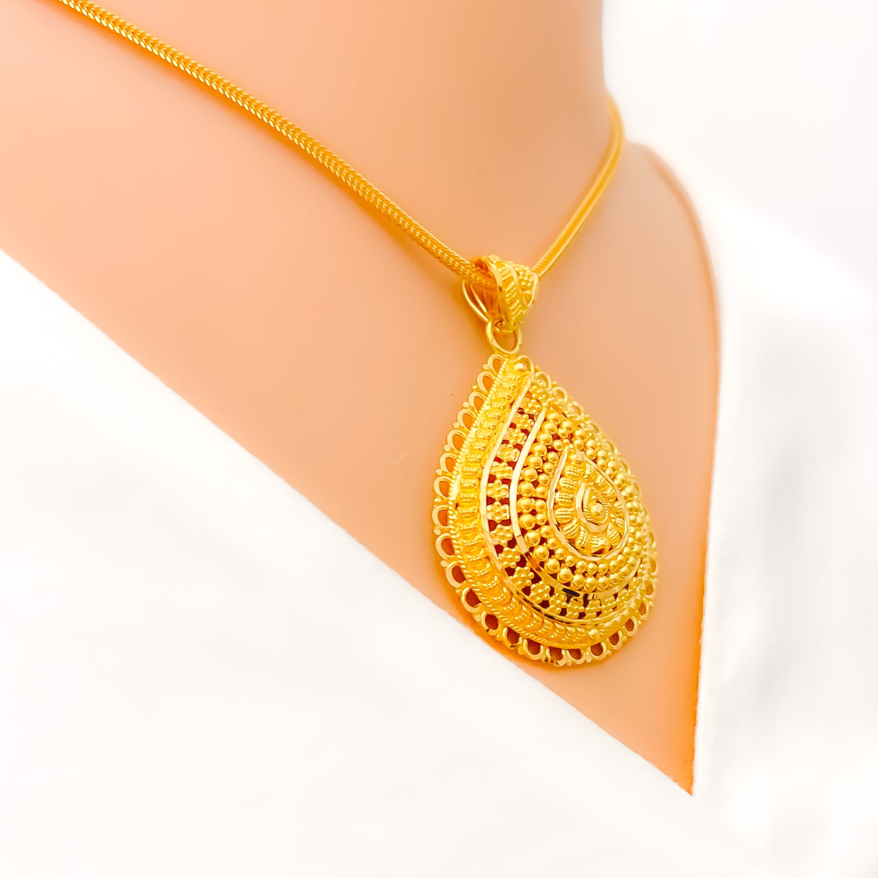 Fancy Beaded Marquise Leaf 22k Gold Pendant Set
