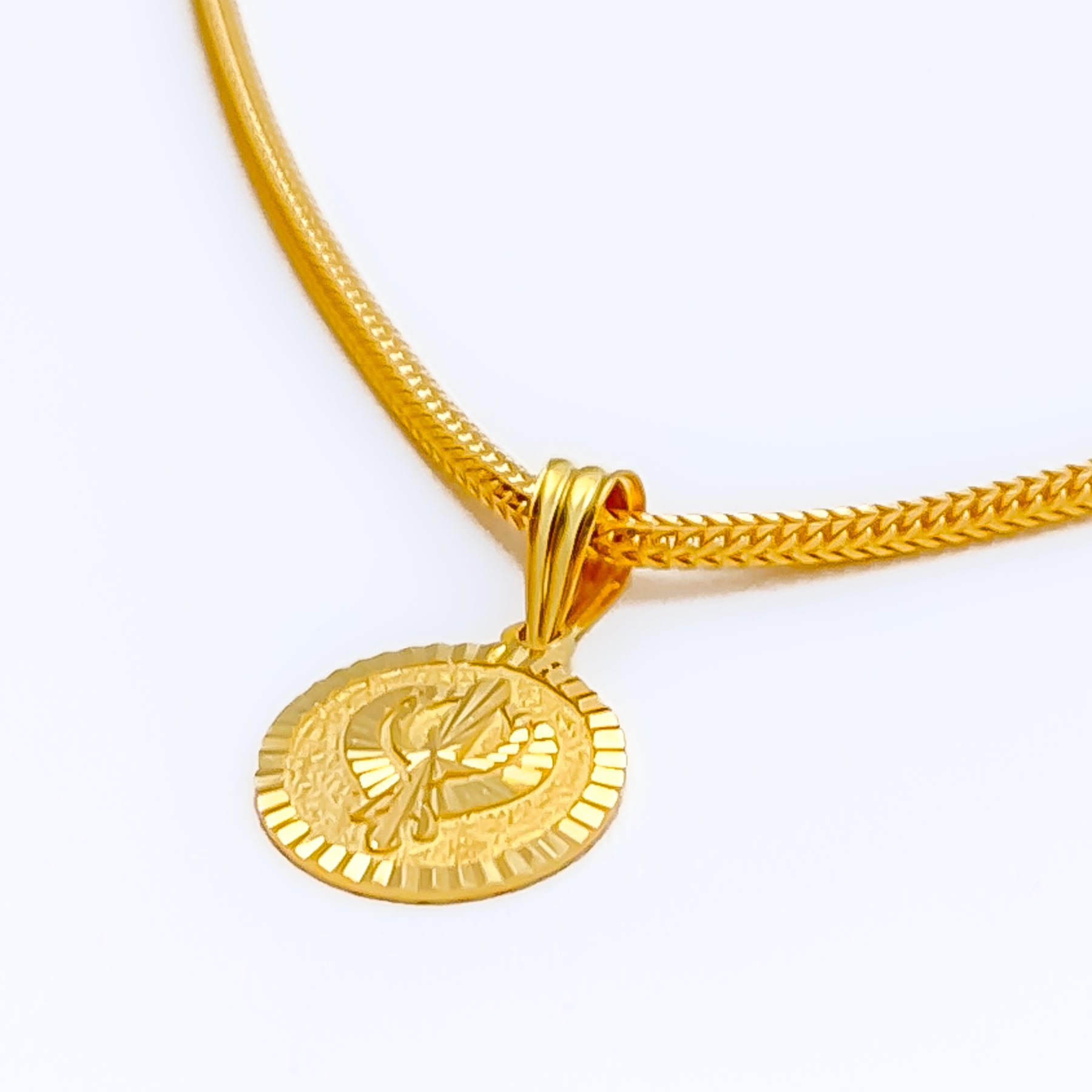 This exquisite Khanda pendant, crafted in 22k yellow gold, carries a graceful 1.9-gram weight for a refined yet meaningful presence. Its compact 0.8-inch size makes it perfect for everyday devotion or as a symbolic accessory. The polished gold finish enhances its radiant glow, adding elegance to its spiritual design. With no chain included, it offers flexibility to complement any style of chain.