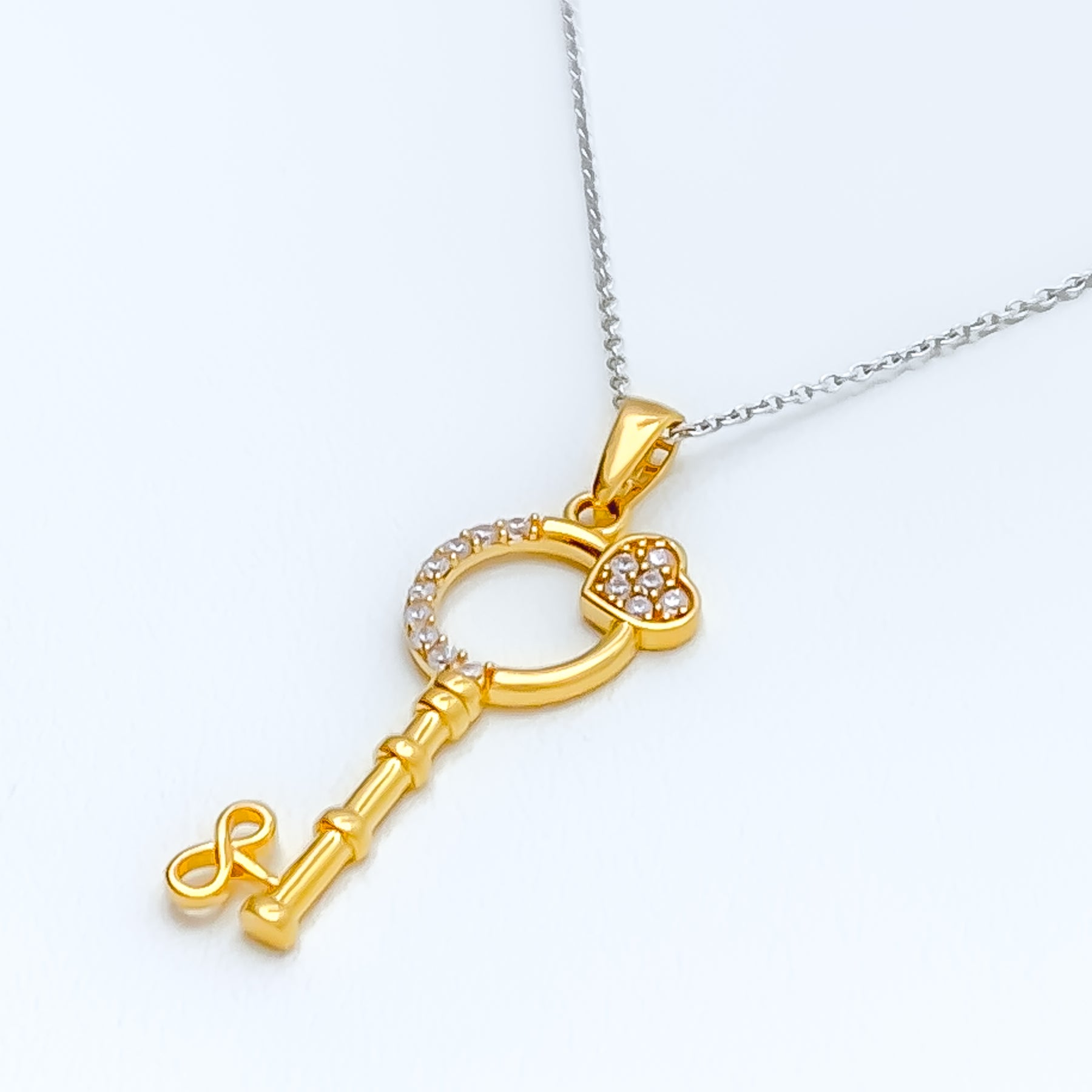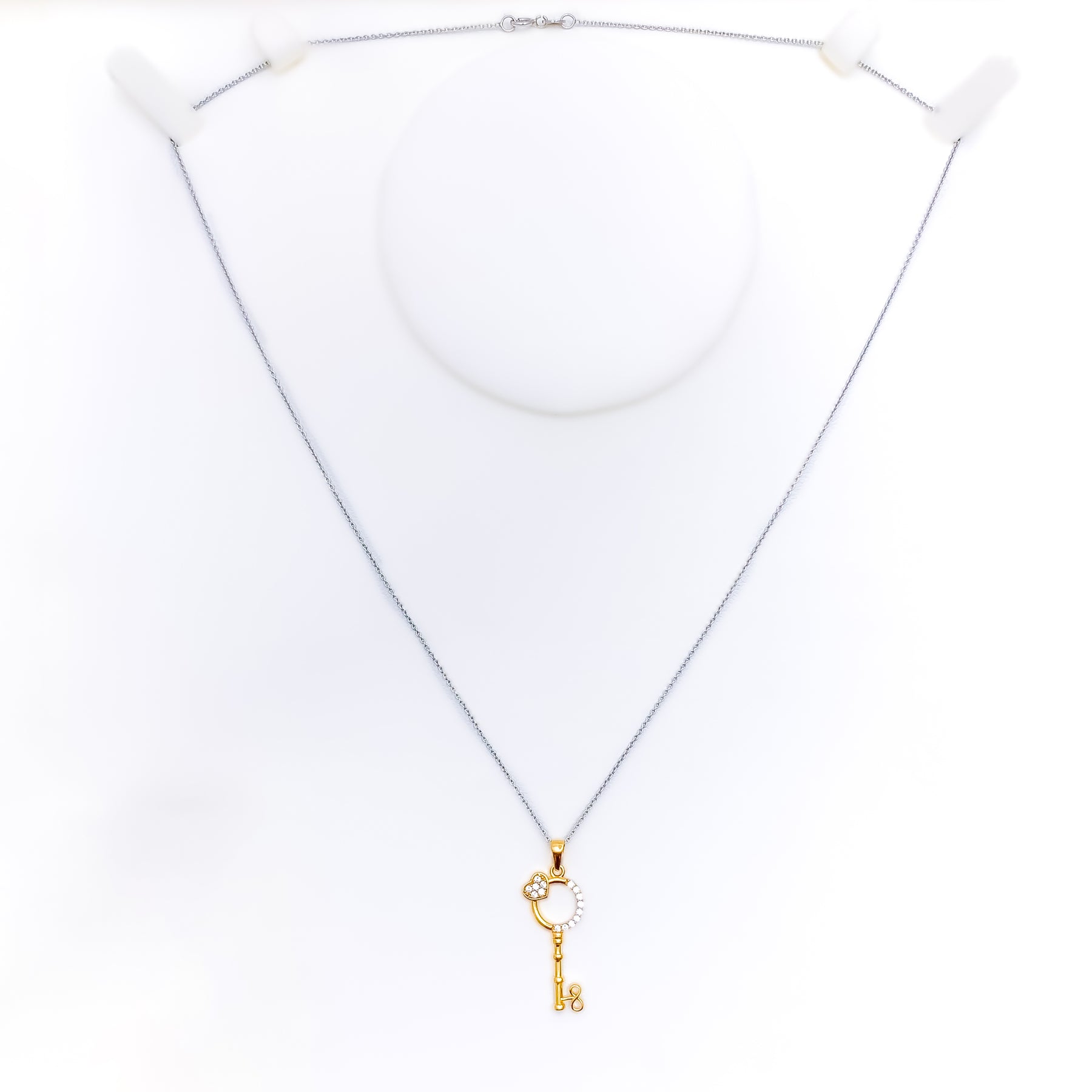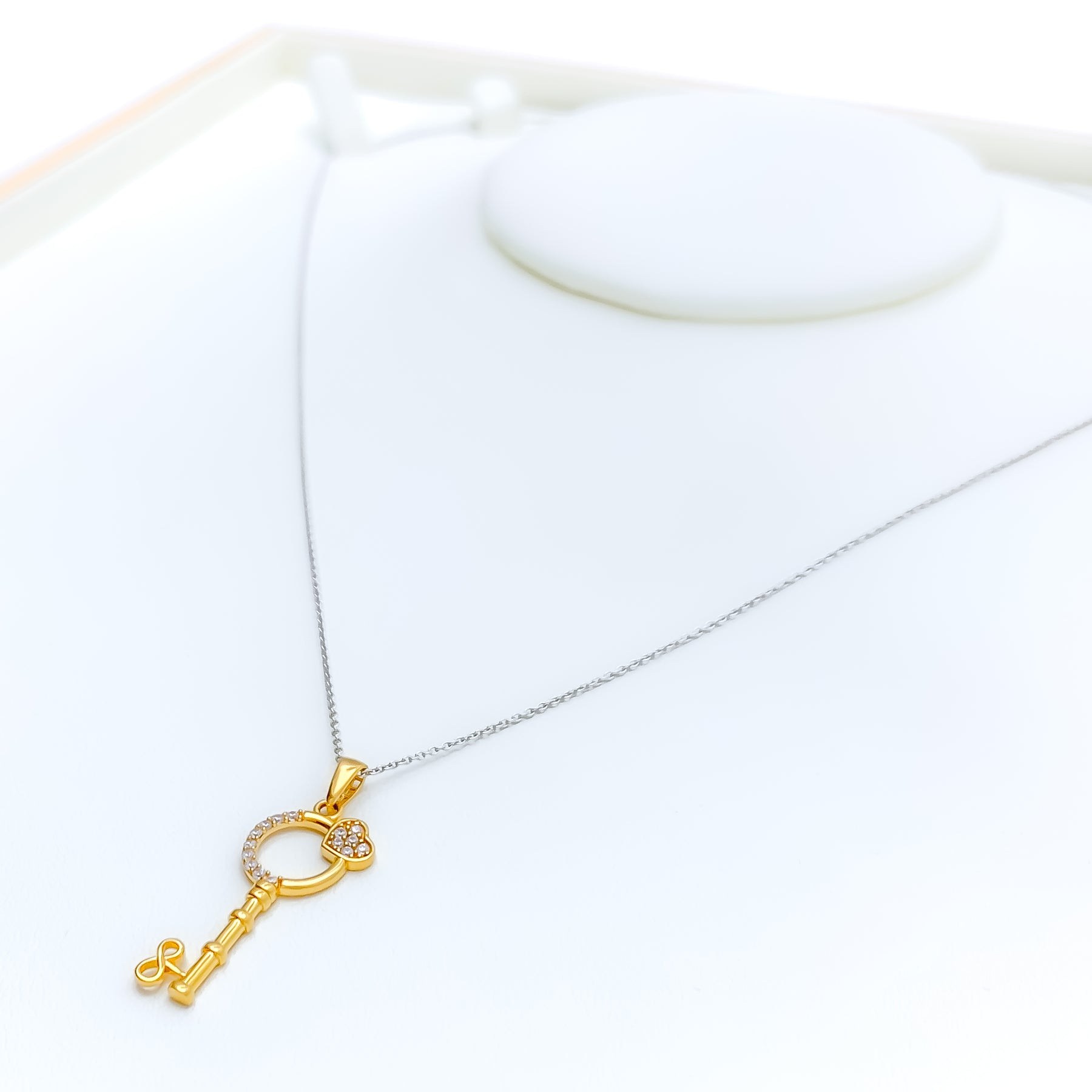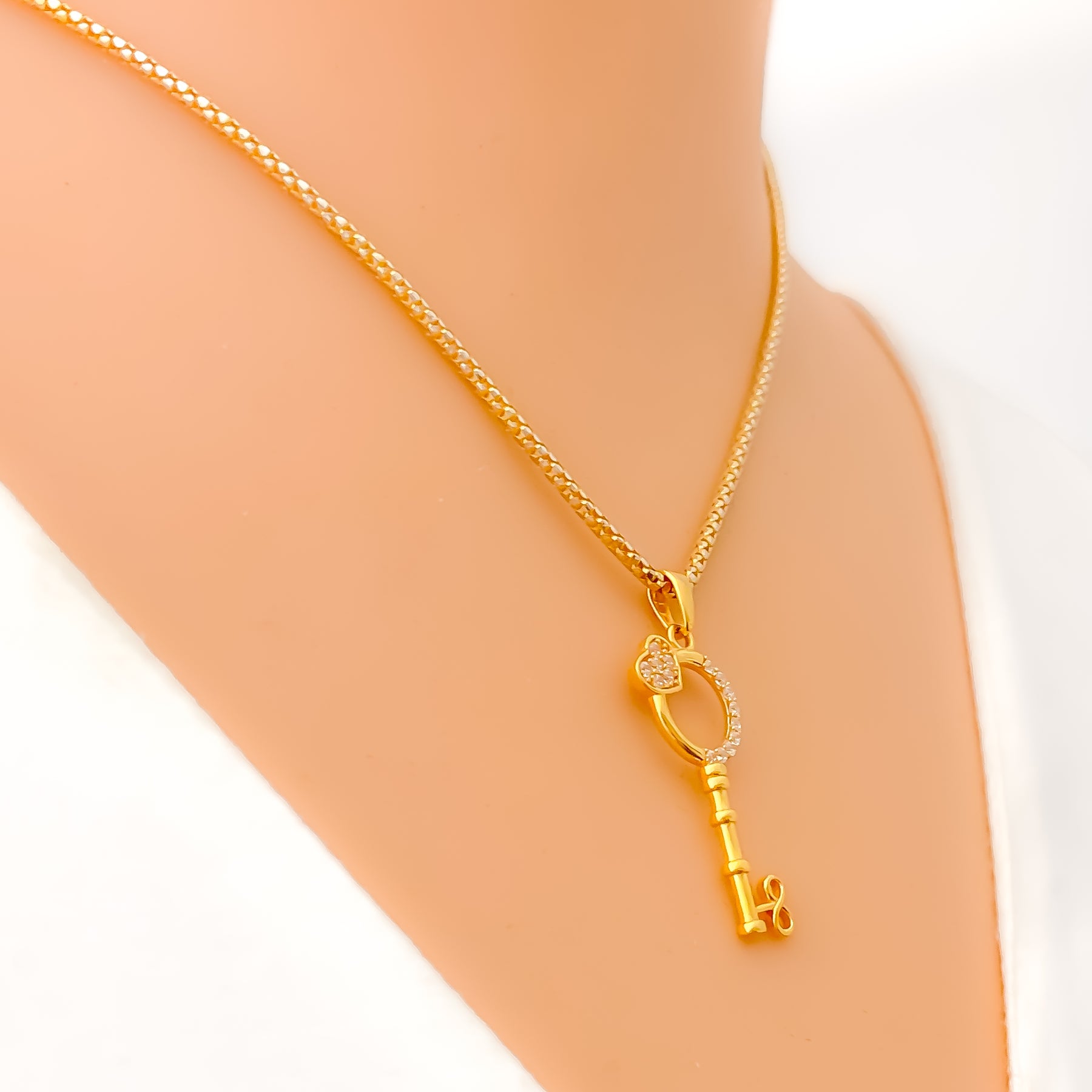 Graceful and luminous, this 21k gold pendant weighs 1.5 grams and features a delicate silhouette accented with sparkling cubic zirconia for a soft, radiant glow. Measuring 1.25 inches in length, it’s finished in warm yellow gold and captures an airy elegance perfect for everyday sophistication. Whether paired with a fine chain or layered for added charm, this piece brings ethereal beauty to any look. Chain not included.