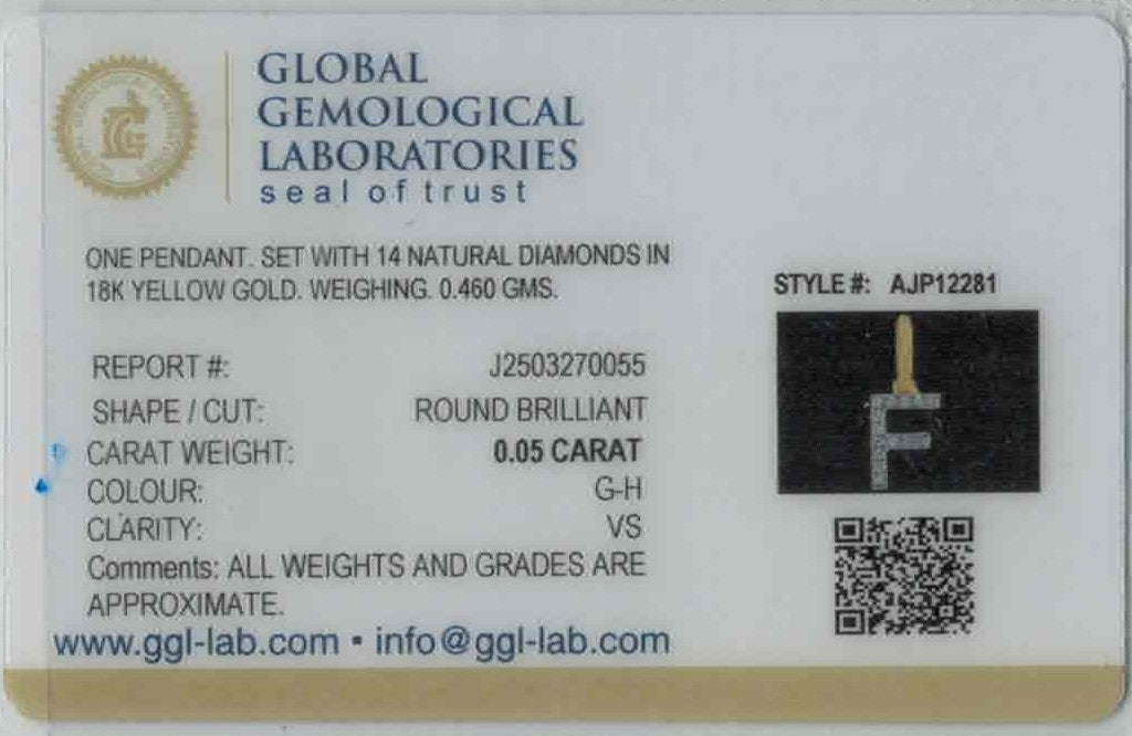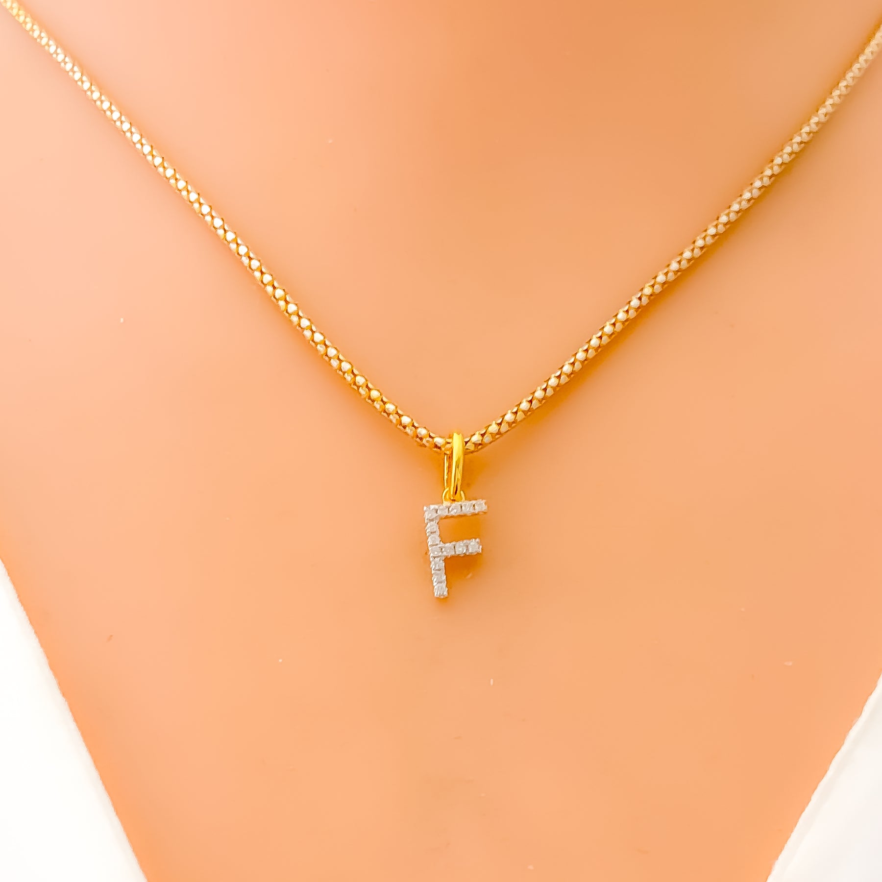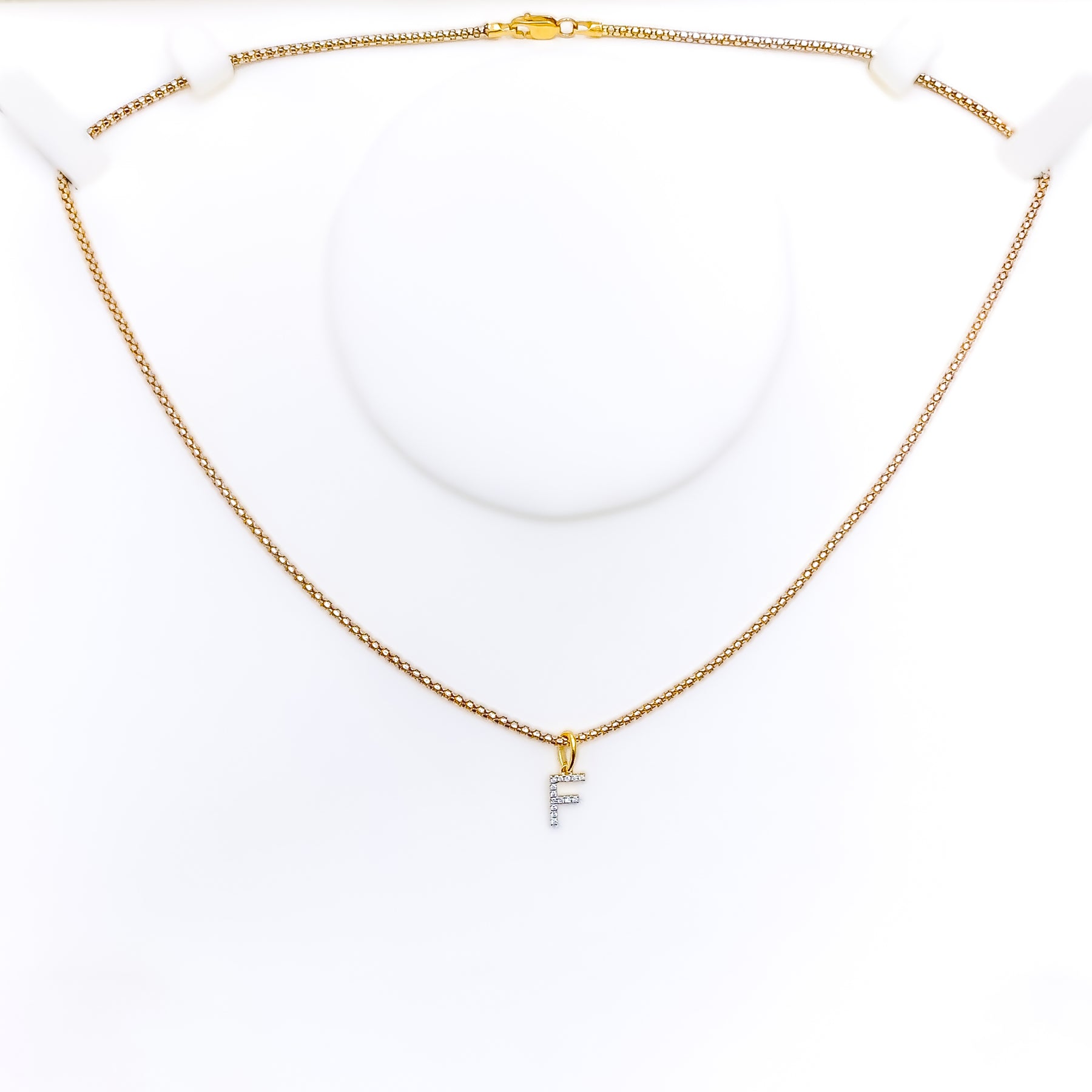 Delicately crafted in 18k yellow gold, this pendant showcases the letter F highlighted by a brilliant 0.05ct VS-quality diamond. Weighing just 0.46 grams and measuring 0.6 inches in length, it offers a light, elegant presence with a polished finish. The subtle sparkle adds charm to its meaningful design. Chain not included, and it is GGL certified for quality and authenticity.