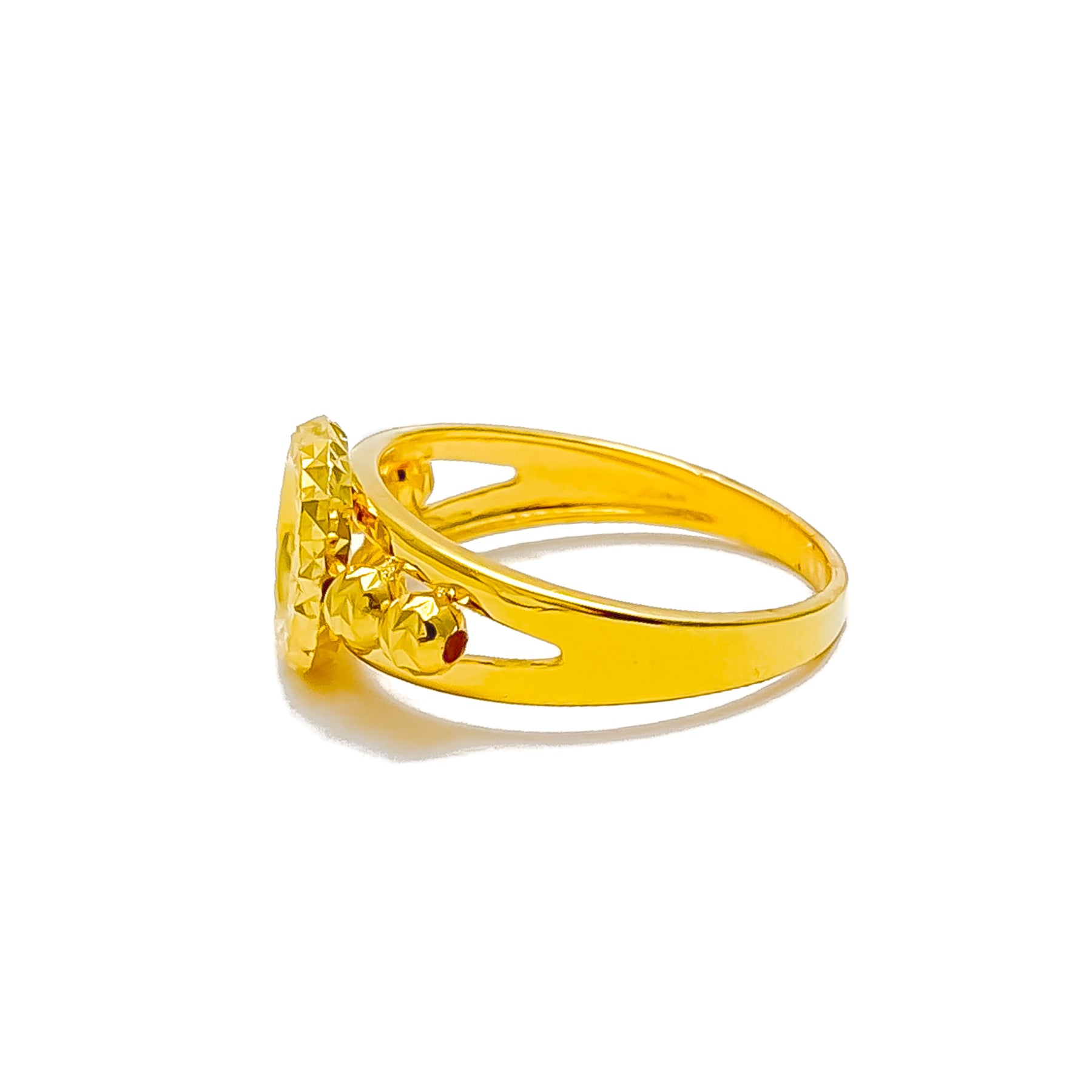 Commanding attention with its confident design, this 2.8-gram ring in 21k yellow gold offers a vivid, eye-catching presence. Sized at 6.25 and eligible for resizing, it provides a precise and comfortable fit. A bold accent that blends statement style with timeless golden elegance.