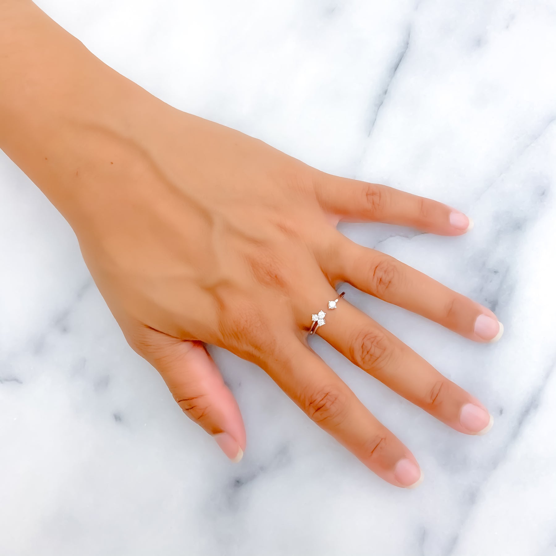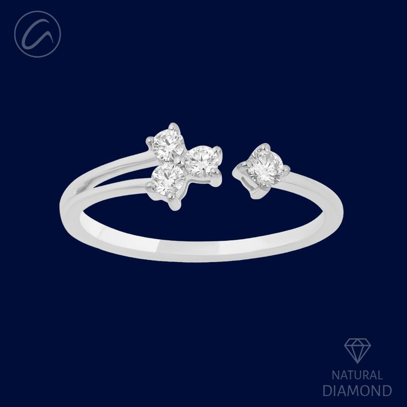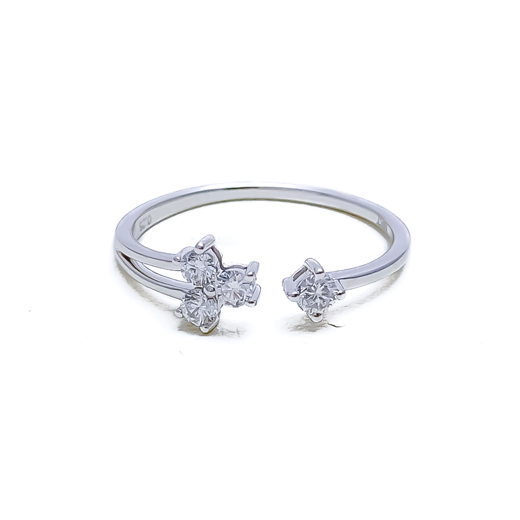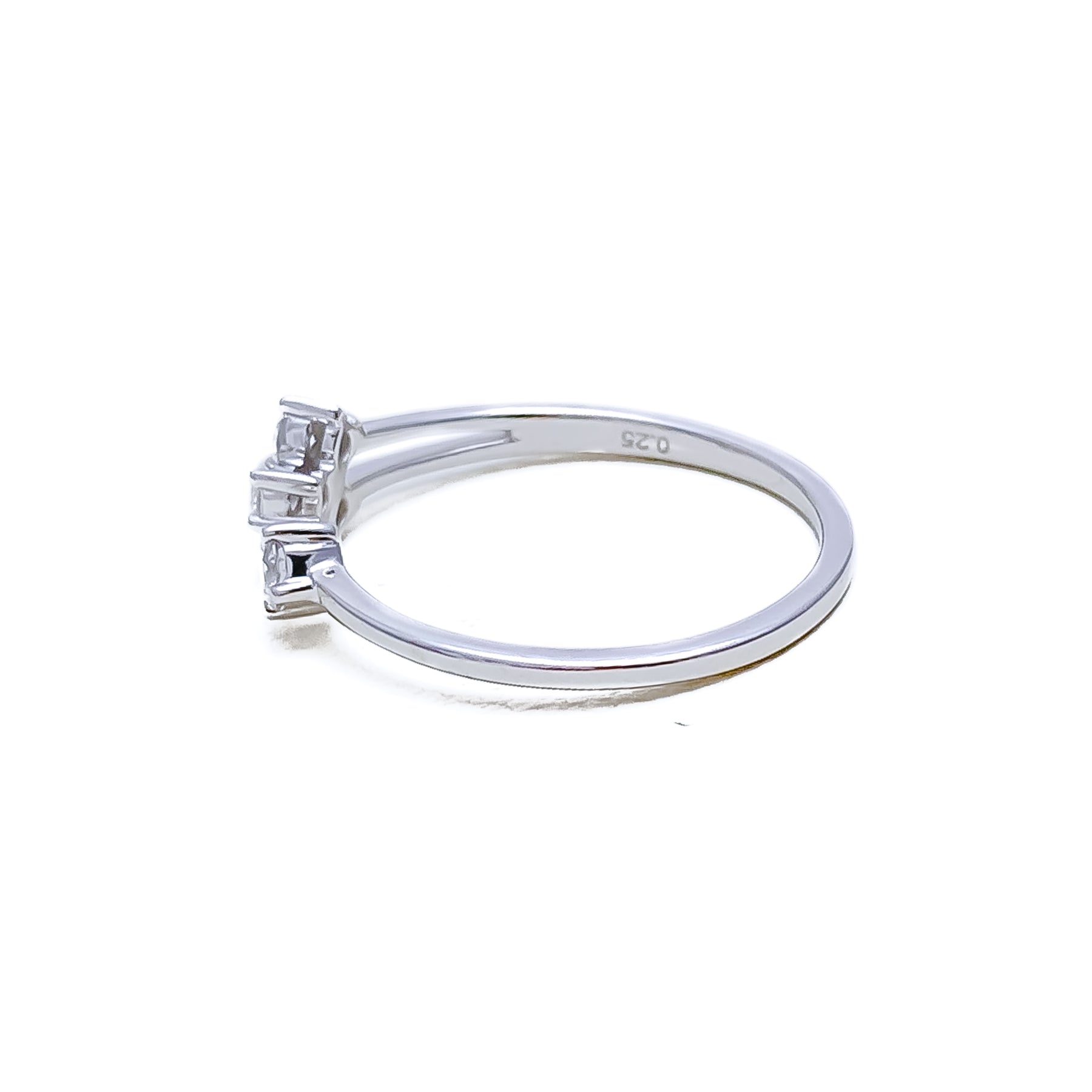 Delicately modern, this 1.77-gram ring in 18k white gold features an open design set with 0.25ct of G-H color, VS clarity round brilliant diamonds. Sized at 7.25 with resizing available, it offers both elegance and a contemporary twist. GGL certified, it's a charming choice for everyday sparkle and refined style.