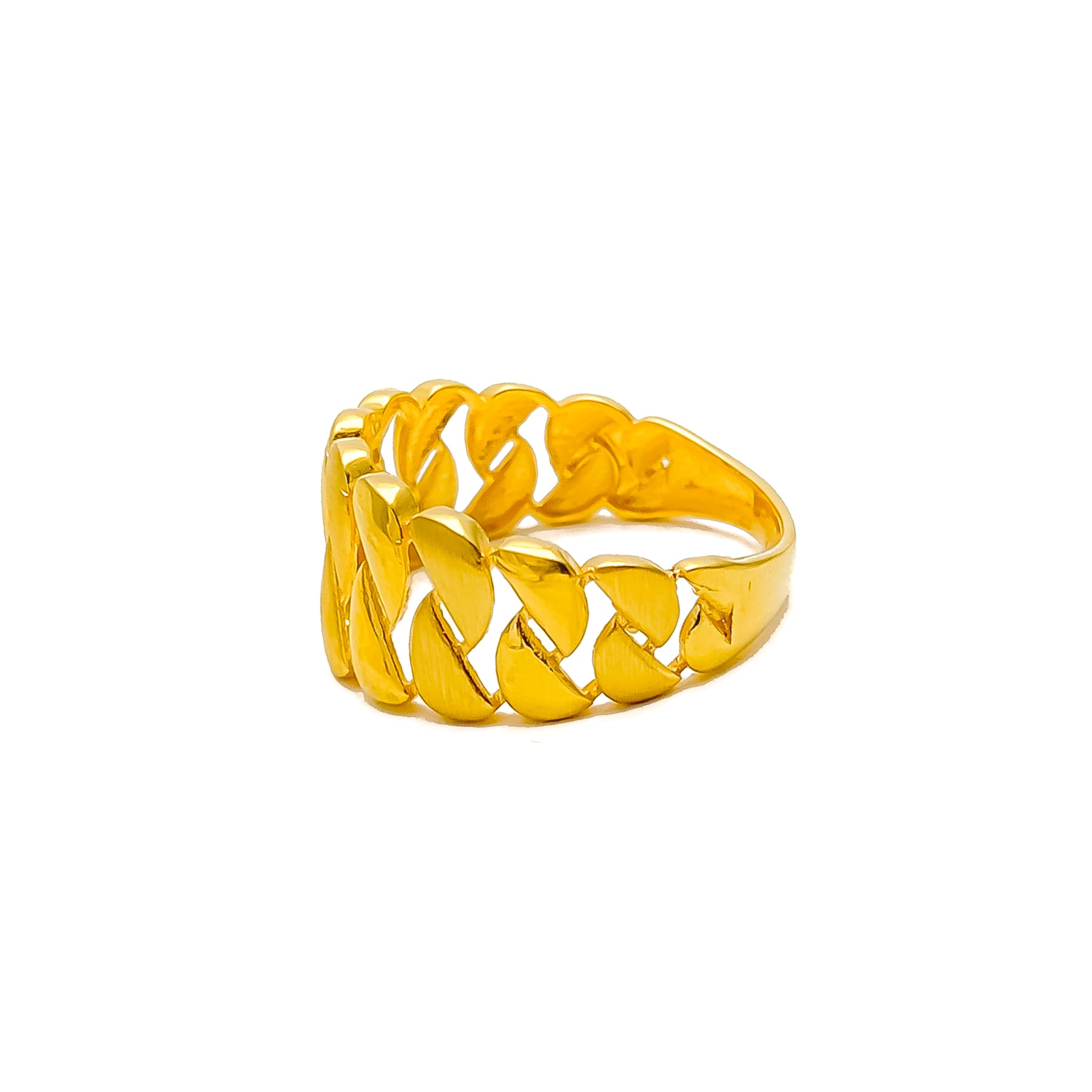 Gracefully styled, this 22k yellow gold ring weighs 3.3 grams and features an interlinked motif with radiant polish. Sized at 8 with resizing available, it blends delicate charm with fine craftsmanship. A lovely accent that adds warmth and elegance to any jewelry ensemble.