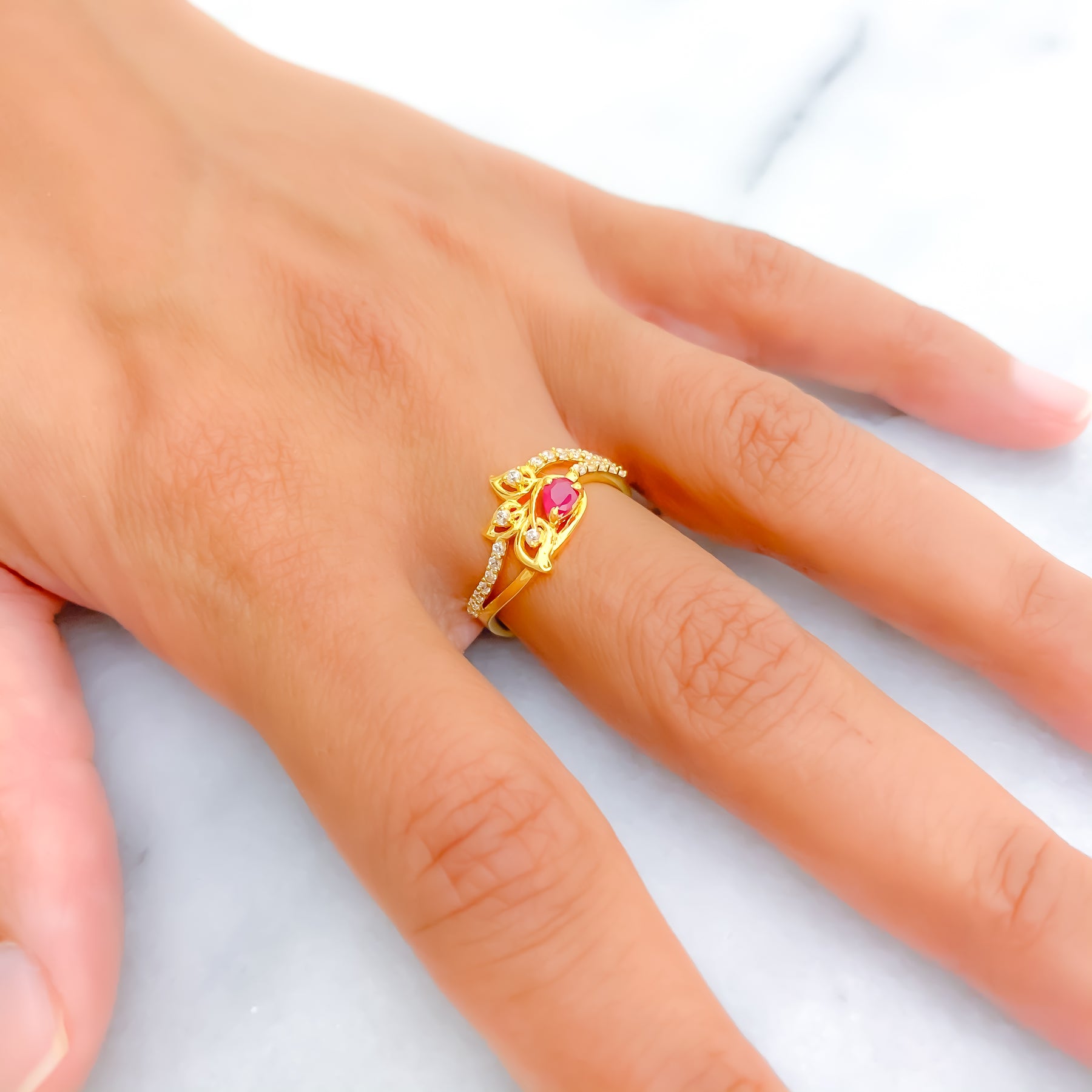 This 22k gold ring, weighing 2.1 grams, combines elegance with a touch of sparkle, thanks to its radiant cubic zirconia stones. The polished yellow gold finish highlights its intricate design, creating a timeless and sophisticated look. Sized at 7, it includes resizing options to ensure a perfect fit. Perfect for those who value refined beauty and versatility, this ring adds a graceful touch to both everyday and special occasions.