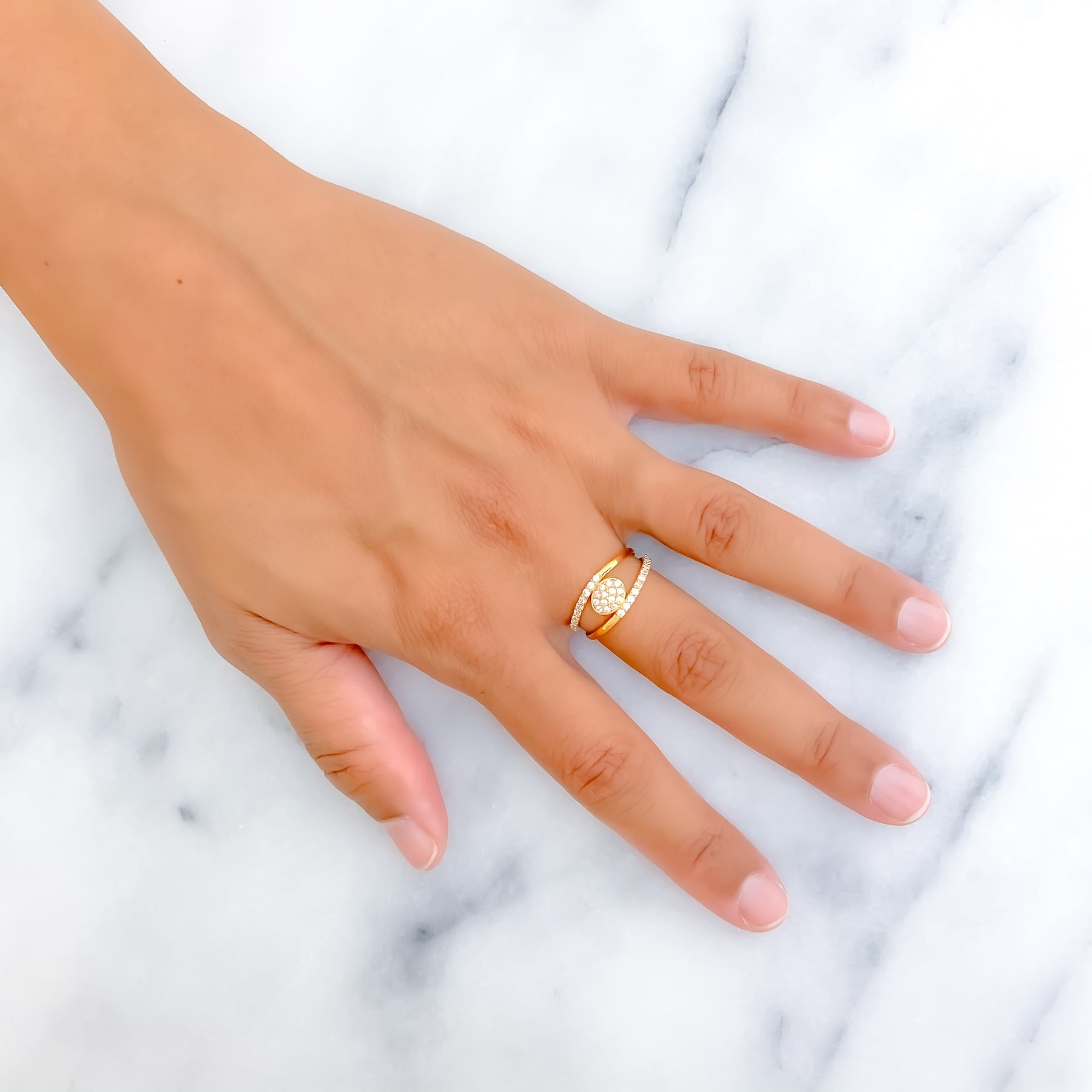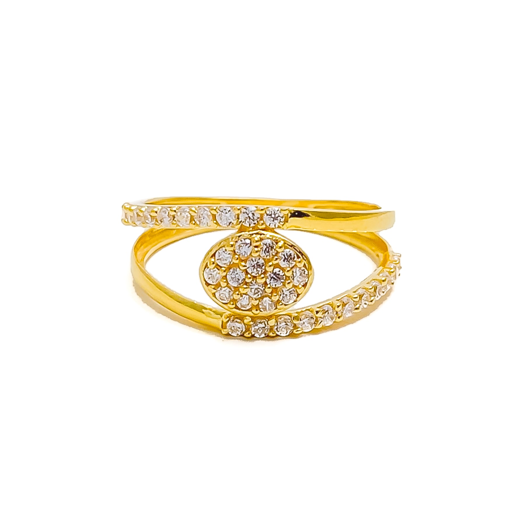 Crafted in luminous 22k yellow gold and weighing 2.5 grams, this exquisite ring features a blooming floral motif accented with radiant cubic zirconia stones. The intricate detailing and polished finish evoke timeless grace and refined femininity. Perfect for adding a hint of sparkle to both casual and formal attire, it embodies elegant artistry in every curve. Available in size 6.5 with re-sizing options for a flawless fit.