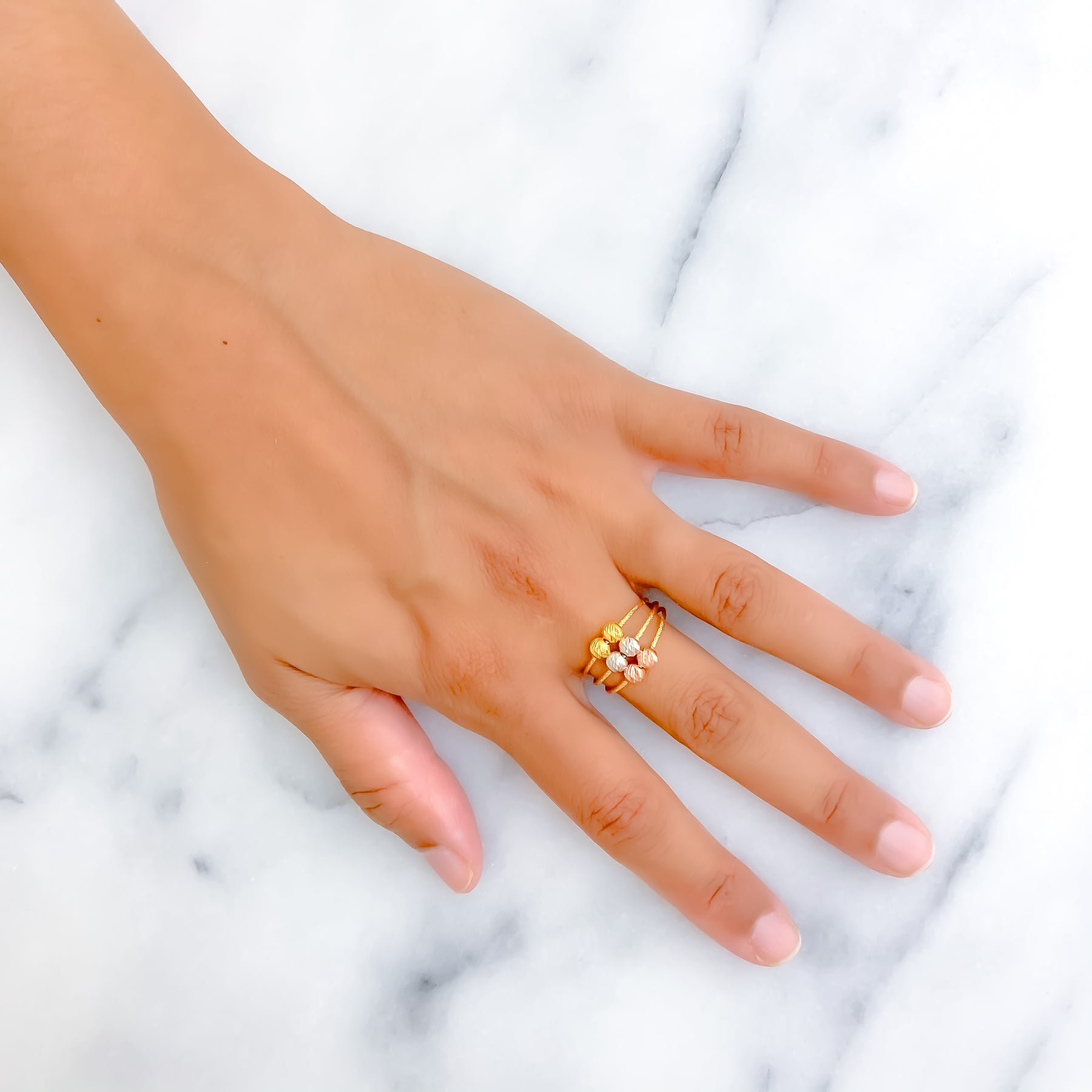 This artistic 22k yellow gold ring, weighing 3.3 grams, features a vibrant orb-inspired design accented with striking multi-color detailing. Its polished finish enhances the radiant glow, adding refined charm. Sized at 6, it offers resizing options for comfort. A lively statement piece that blends elegance with contemporary flair.