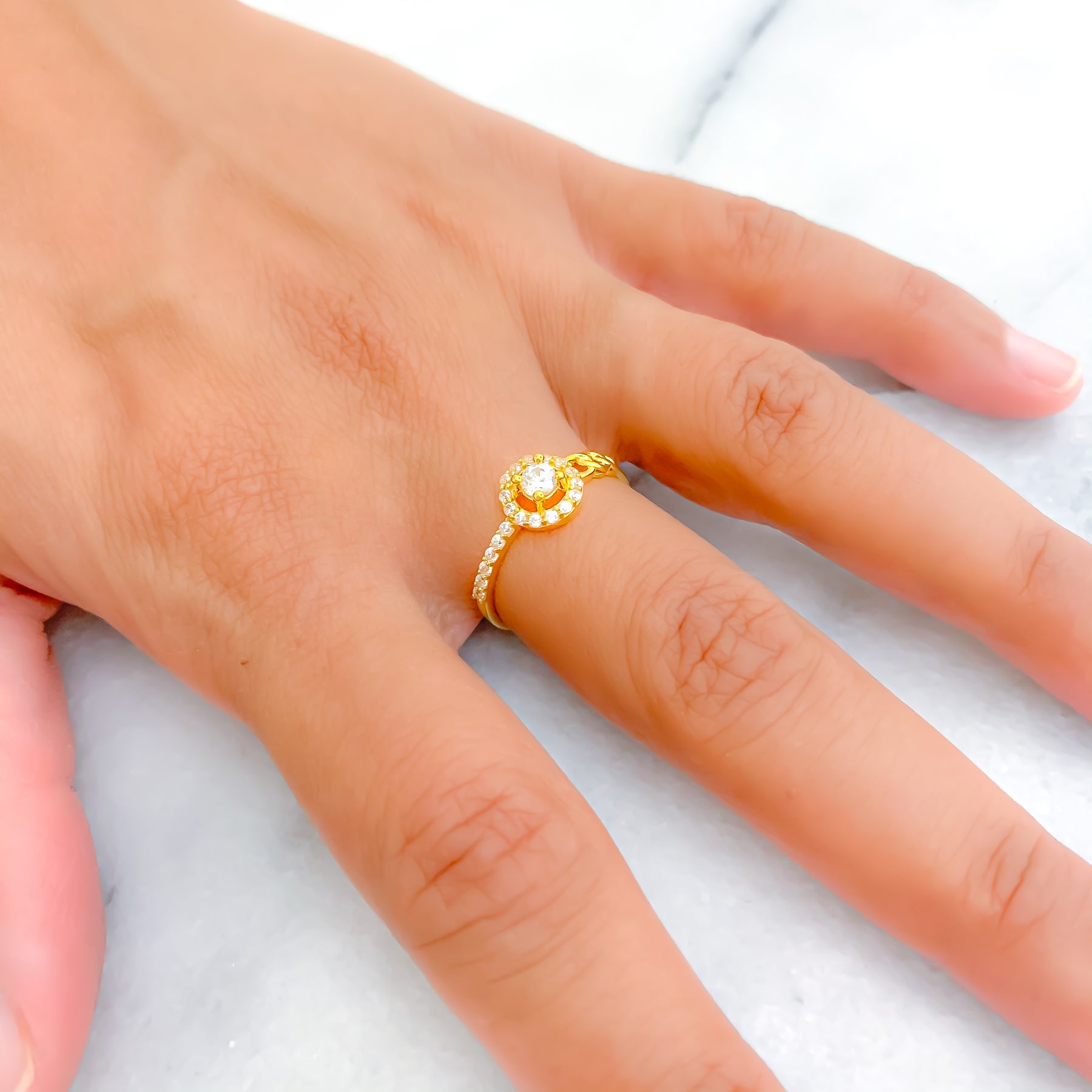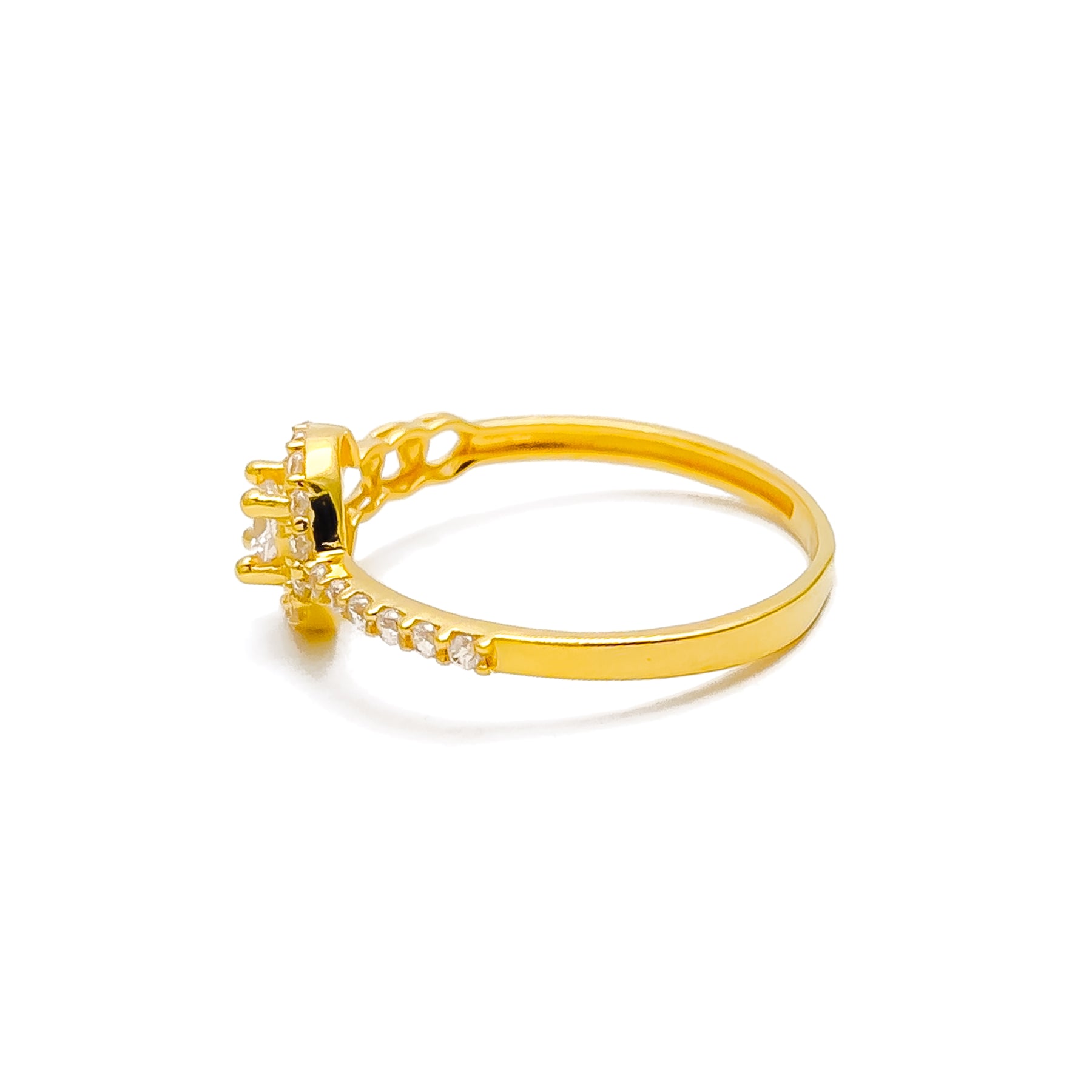 This radiant 22k yellow gold ring, weighing 1.7 grams, captures brilliance and elegance in every detail. Adorned with a luminous cubic zirconia stone, it sparkles with refined sophistication while maintaining a timeless appeal. Its polished finish and slender form make it perfect for everyday luxury or special occasions. Available in size 7 with re-sizing options, it’s a versatile treasure for any jewelry collection.