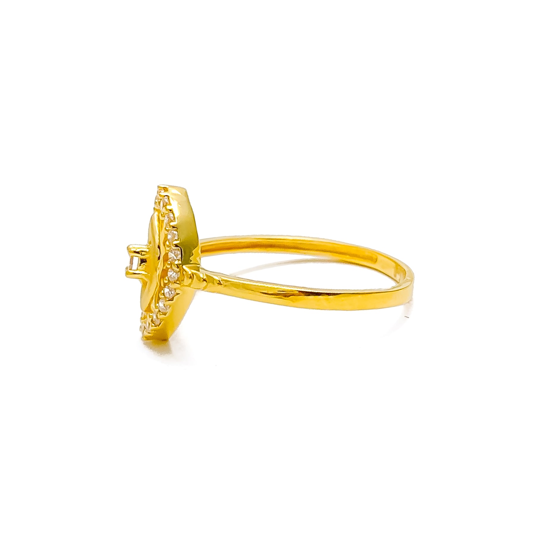 Brimming with radiance, this 22k yellow gold ring weighs 2.2 grams and features an elegant oval-cut cubic zirconia that captures light with dazzling brilliance. Its smooth, lustrous finish adds a touch of refinement, making it an ideal choice for both modern and traditional ensembles. Perfect for elevating any look, this piece blends sophistication with understated glamour. Available in size 7.5 with re-sizing options for a comfortable fit.