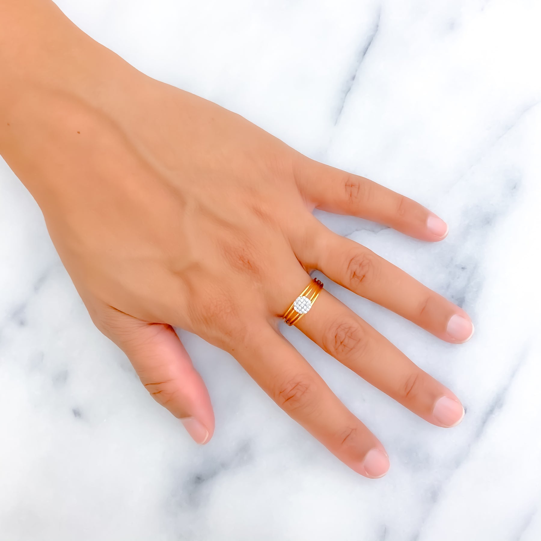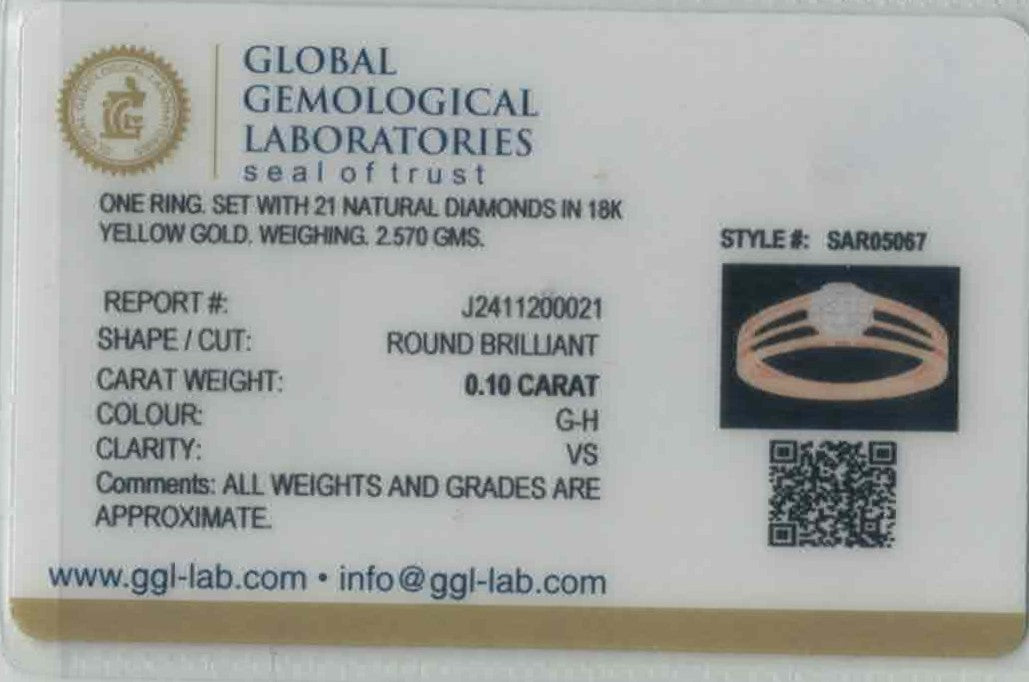 Gracefully crafted, this 18k yellow gold diamond ring radiates timeless charm with its refined simplicity and luminous sparkle. Weighing 2.57 grams, it embodies an elegant balance of delicacy and sophistication. The 0.10ct of G-H color, VS quality round brilliant-cut diamonds shimmer with captivating brilliance. Sized 7.25 with re-sizing available, it’s a graceful touch of modern luxury.