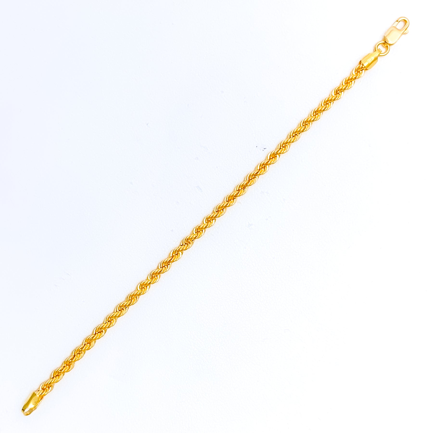 Charming and thoughtfully crafted, this 22k yellow gold bracelet offers a custom-feel design with delicate appeal. Weighing 1.9 grams and measuring 5.1 inches in length, it provides a perfect fit for a teen’s wrist. The polished finish adds a soft golden glow to its minimalist silhouette. Secured with a lobster lock, it’s an ideal piece for everyday elegance and personal style.