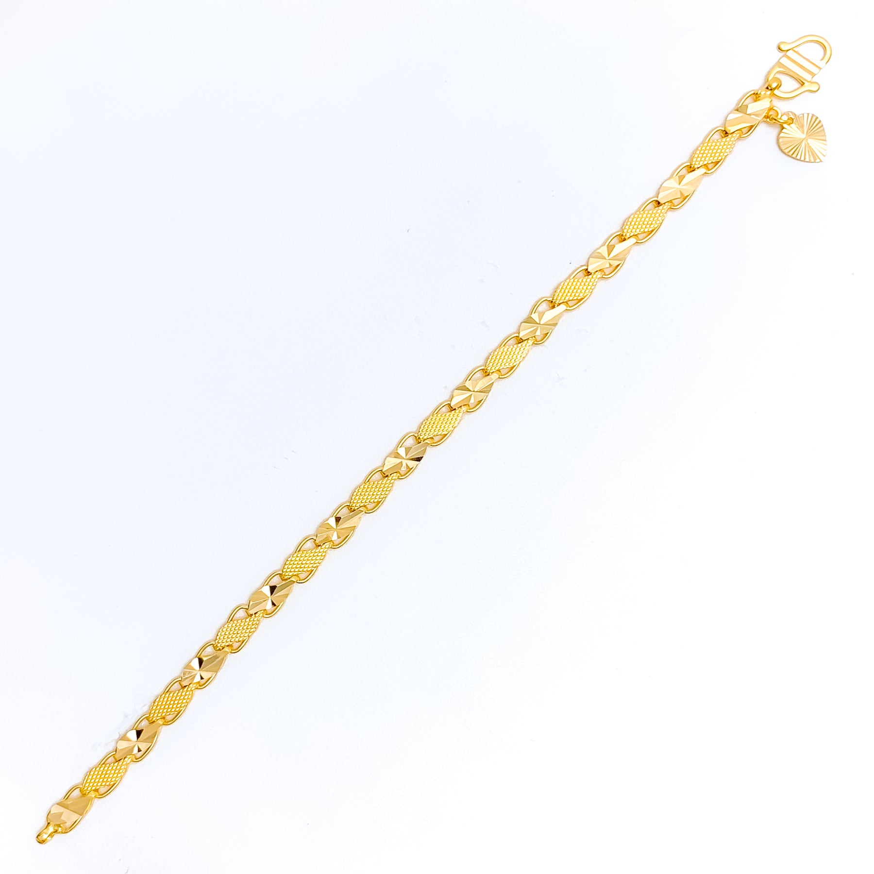 Bursting with playful elegance, this 22k gold bracelet weighs 10.8 grams and showcases a lively design that adds a spirited touch to any ensemble. Measuring 7 inches in length and secured with a classic S lock, it promises both comfort and reliable wear. The vibrant yellow gold finish amplifies its jazzy character, making it perfect for those who enjoy a hint of flair in their everyday style. Ideal for layering or solo wear, this bracelet effortlessly blends charm with timeless sophistication.