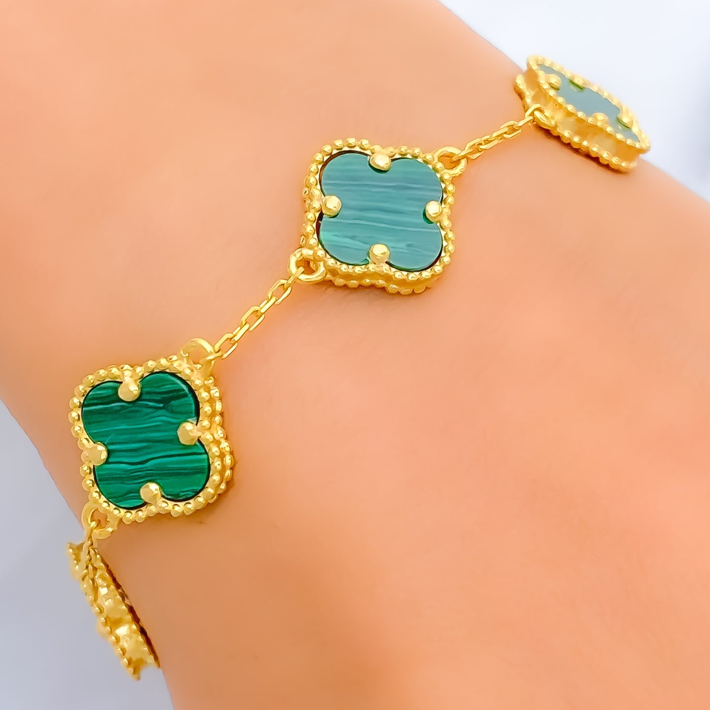 Classy 5-Piece Green Clover 21k Gold Necklace Set