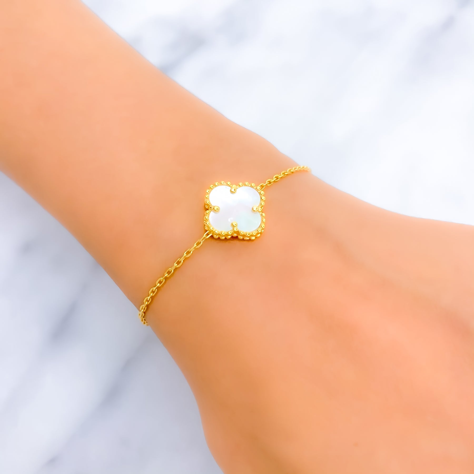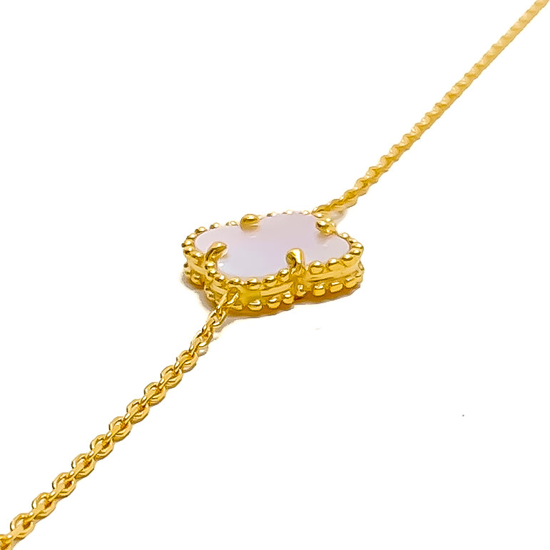 Chic Mother Of Pearl 21k Gold Clover Bracelet