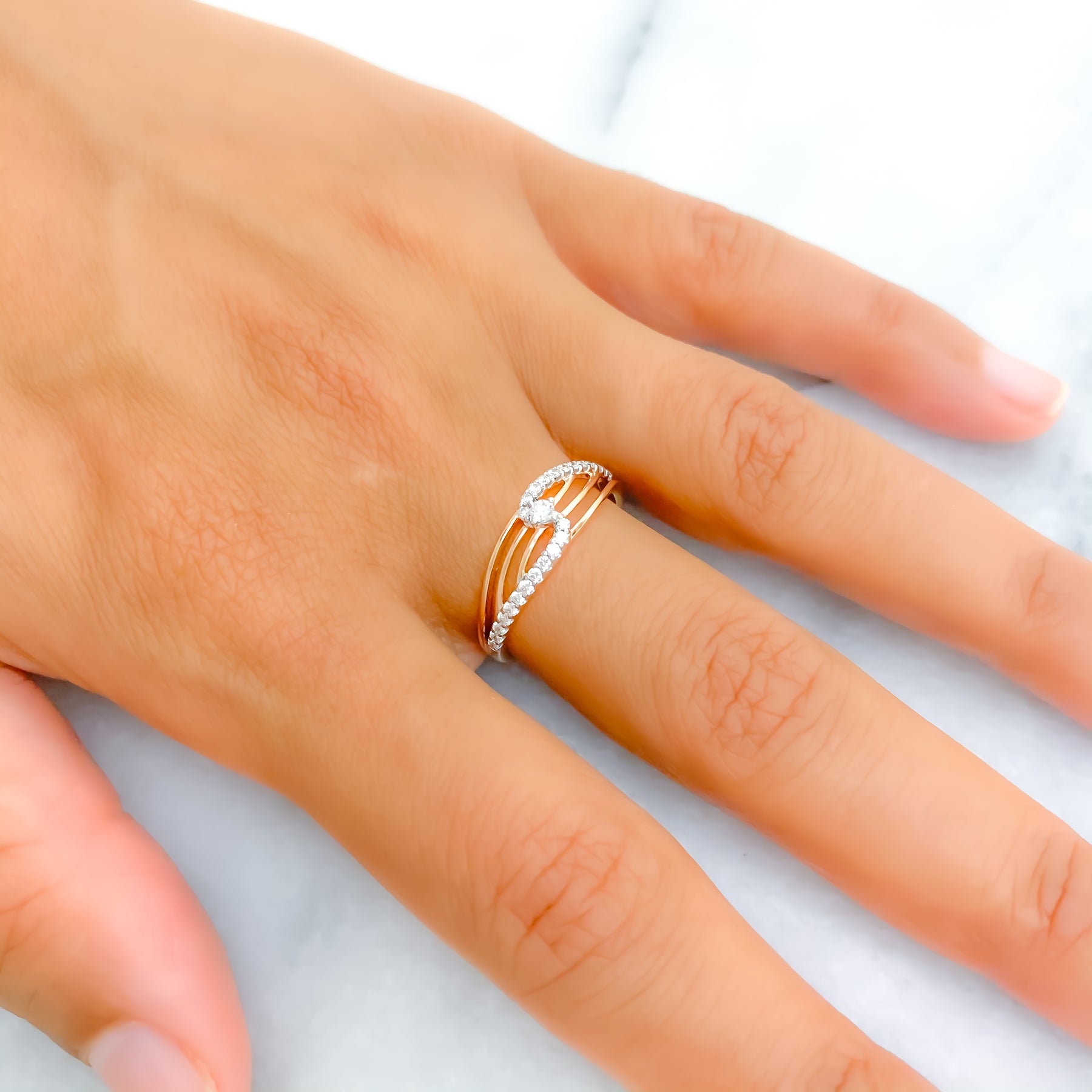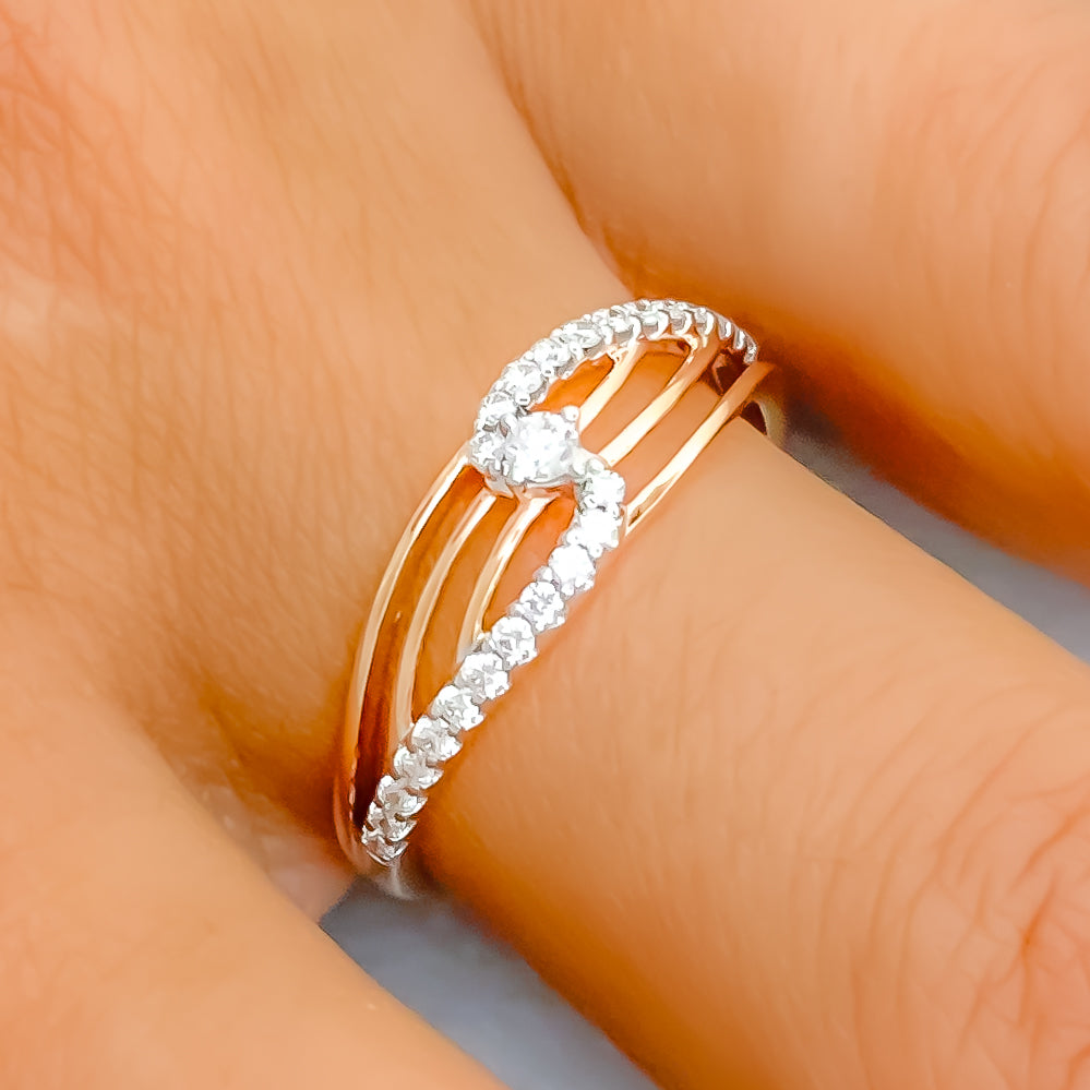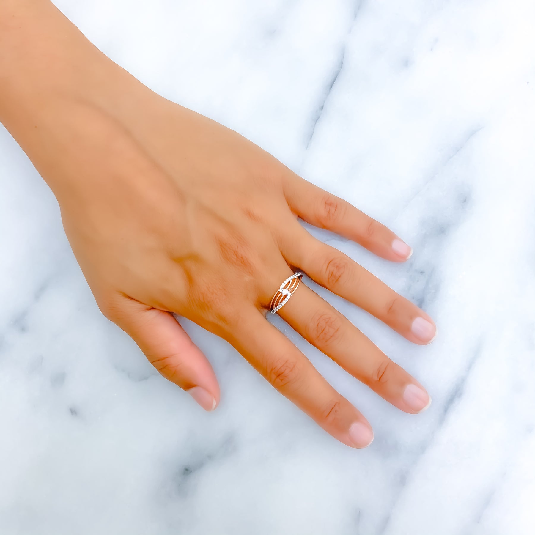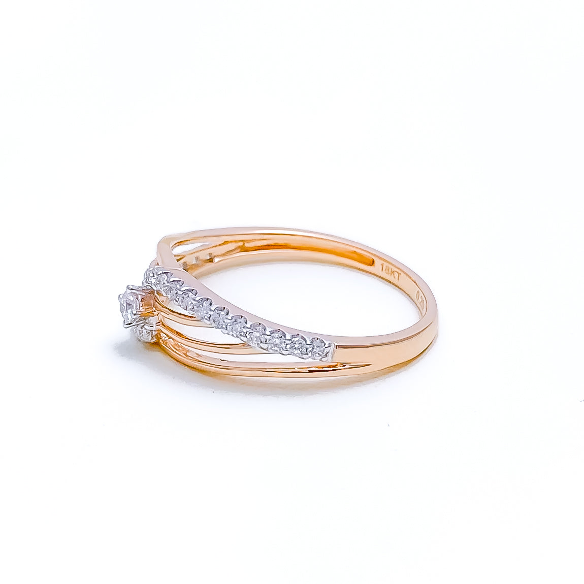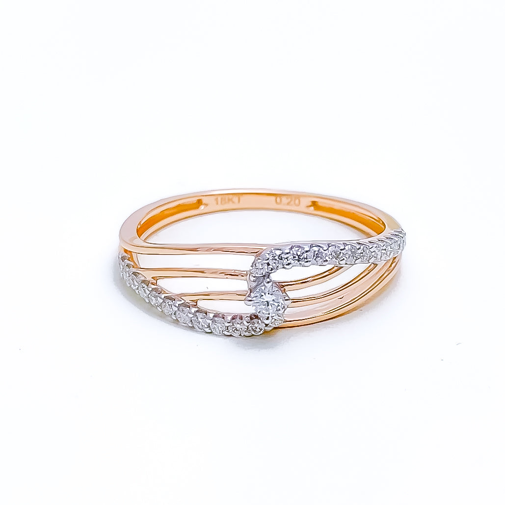 Contemporary Diamond Wave Ring, a chic and elegant addition to your jewelry collection. Crafted from 18k Rose Gold, this ring weighs 1.7 grams and features a stunning 0.20ct Round Brilliant Cut Diamond. With its unique design, this ring is perfect for any fashion-forward woman. Available in size 7 and with ring sizing options, make this ring yours today.