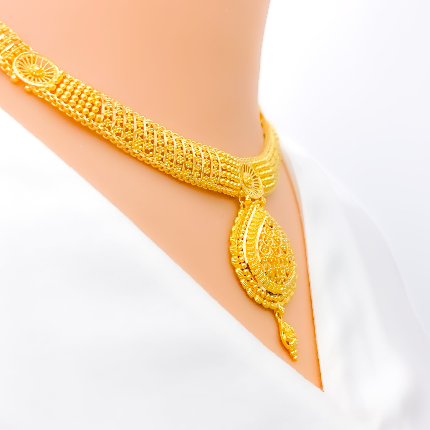 Reflective Domed Drop 22k Gold Necklace Set