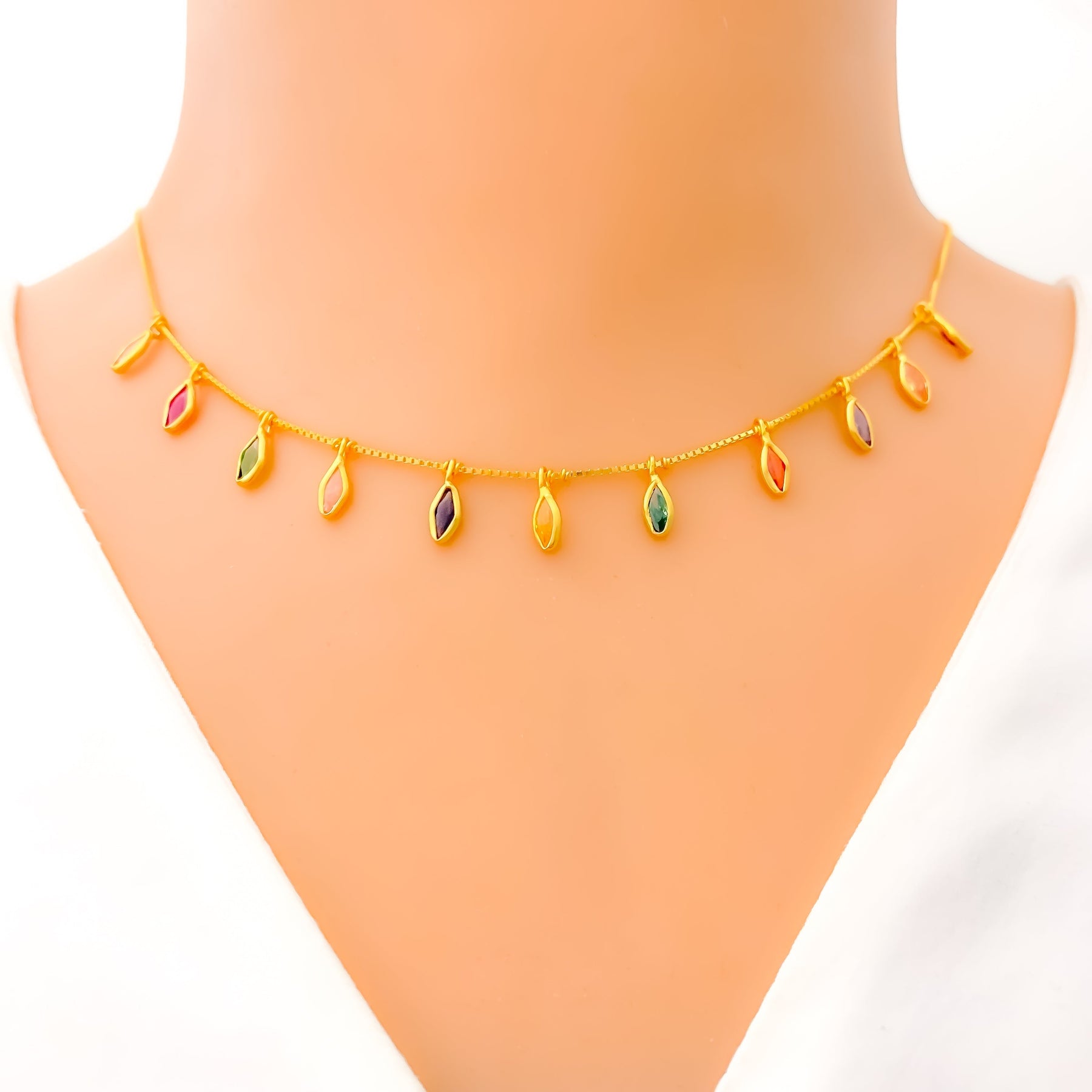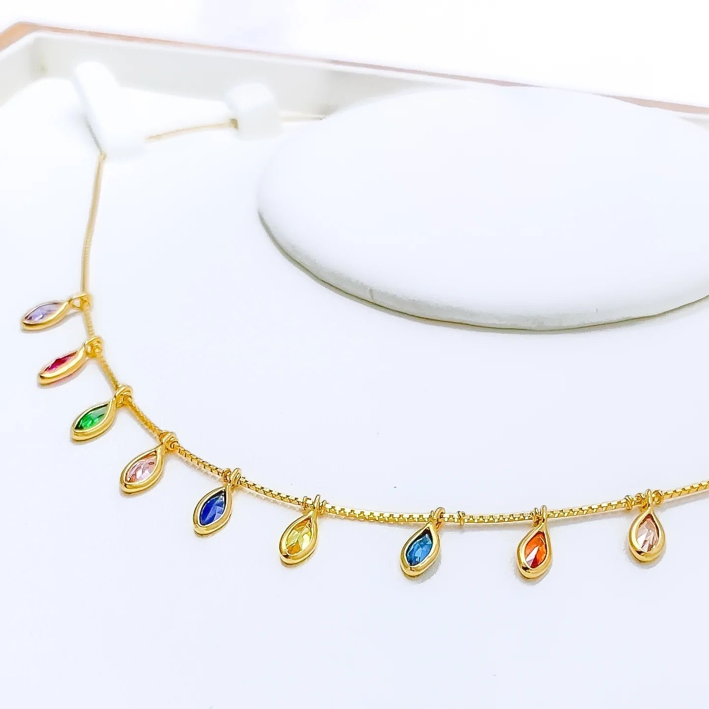 Bright Splashy CZ Marquise Charm 22k Gold Necklace