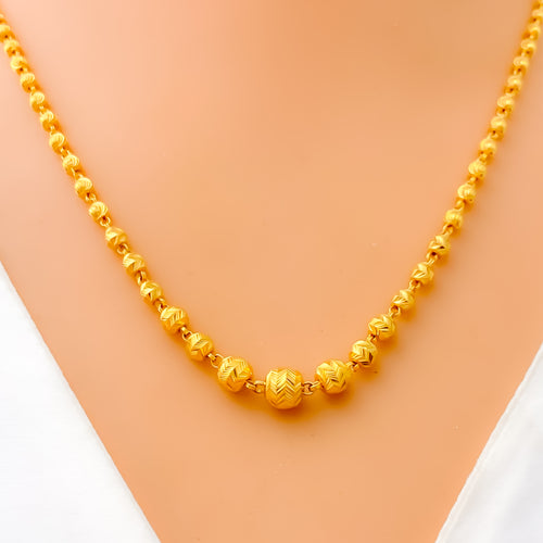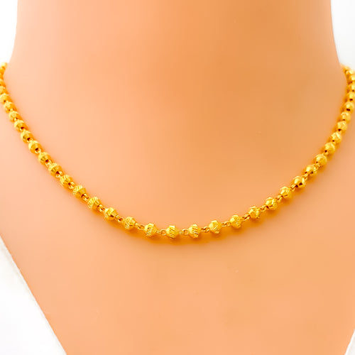 Crafted in radiant 22k yellow gold and weighing 17.2 grams, this necklace set features a delightful fusion of floral and heart motifs, brought to life with a dazzling polished finish. The 16-inch necklace sits elegantly on the neckline and secures with a traditional S lock for reliable wear. Matching 0.7-inch earrings with push-back posts mirror the design’s romantic elegance. A charming blend of sentiment and sophistication, this set is perfect for special occasions and graceful everyday adornment.