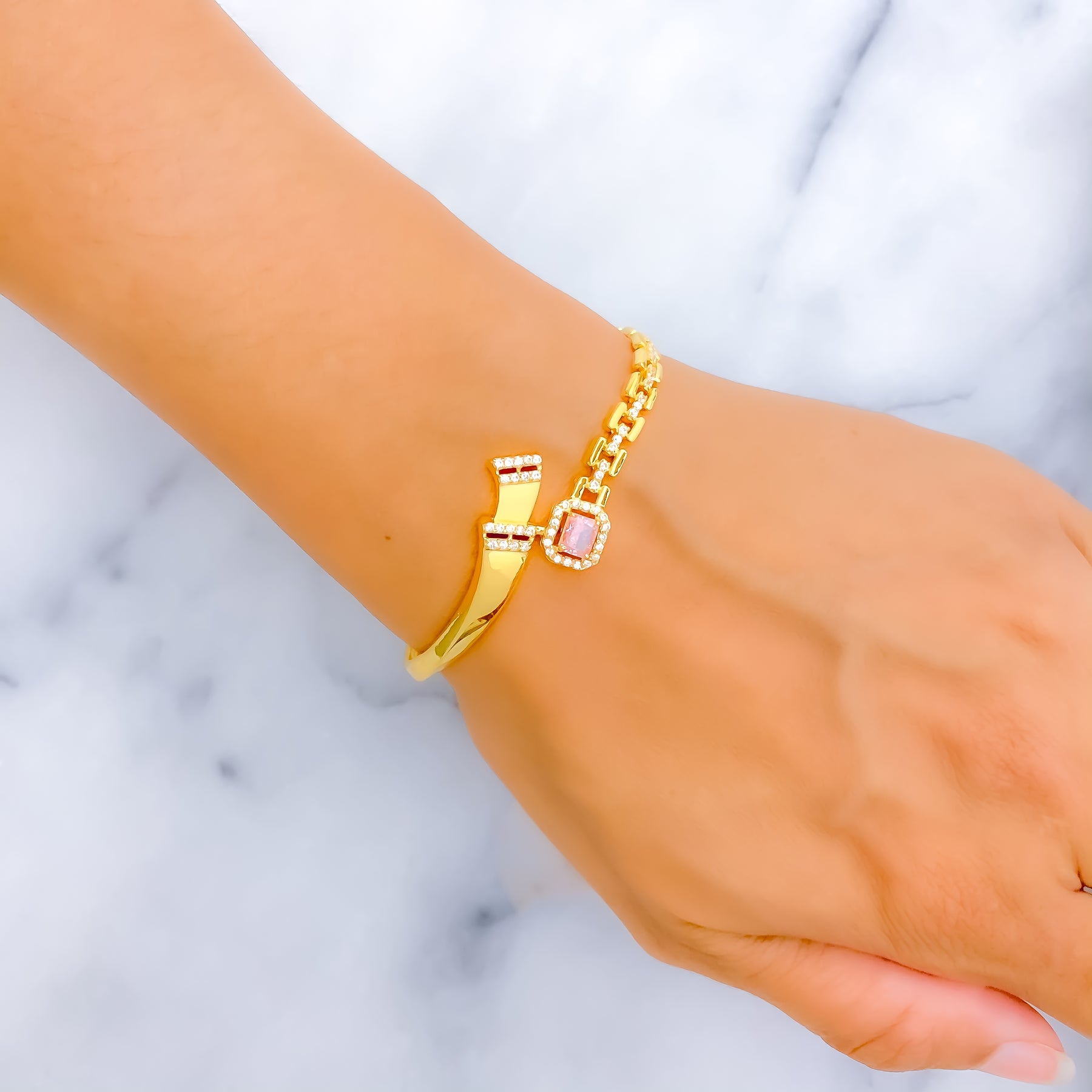 Exquisite Adorned 22k Gold CZ Bangle Bracelet